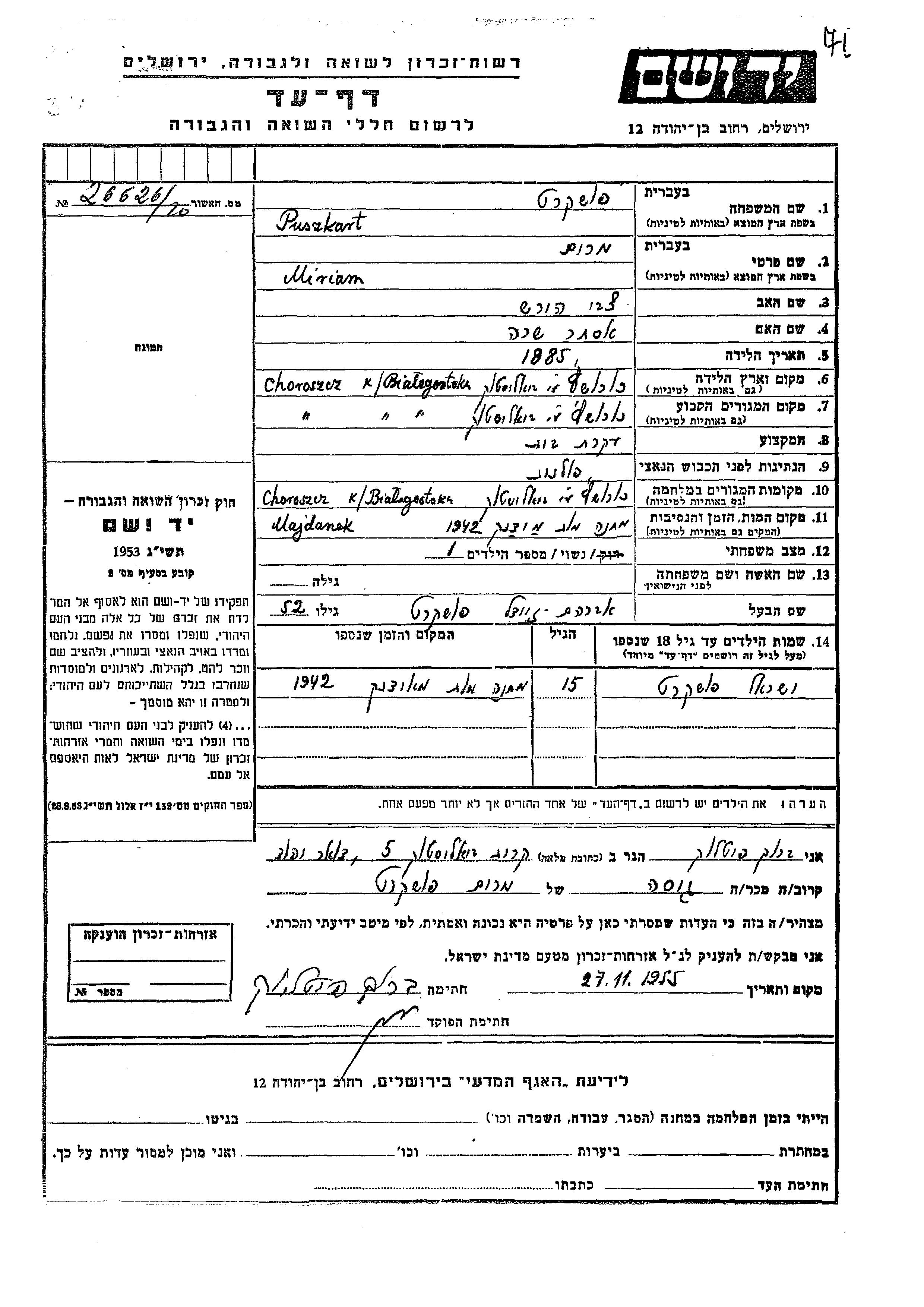 Puszkart Miriam 1885 Choroszcz, Poland Page of Testimony