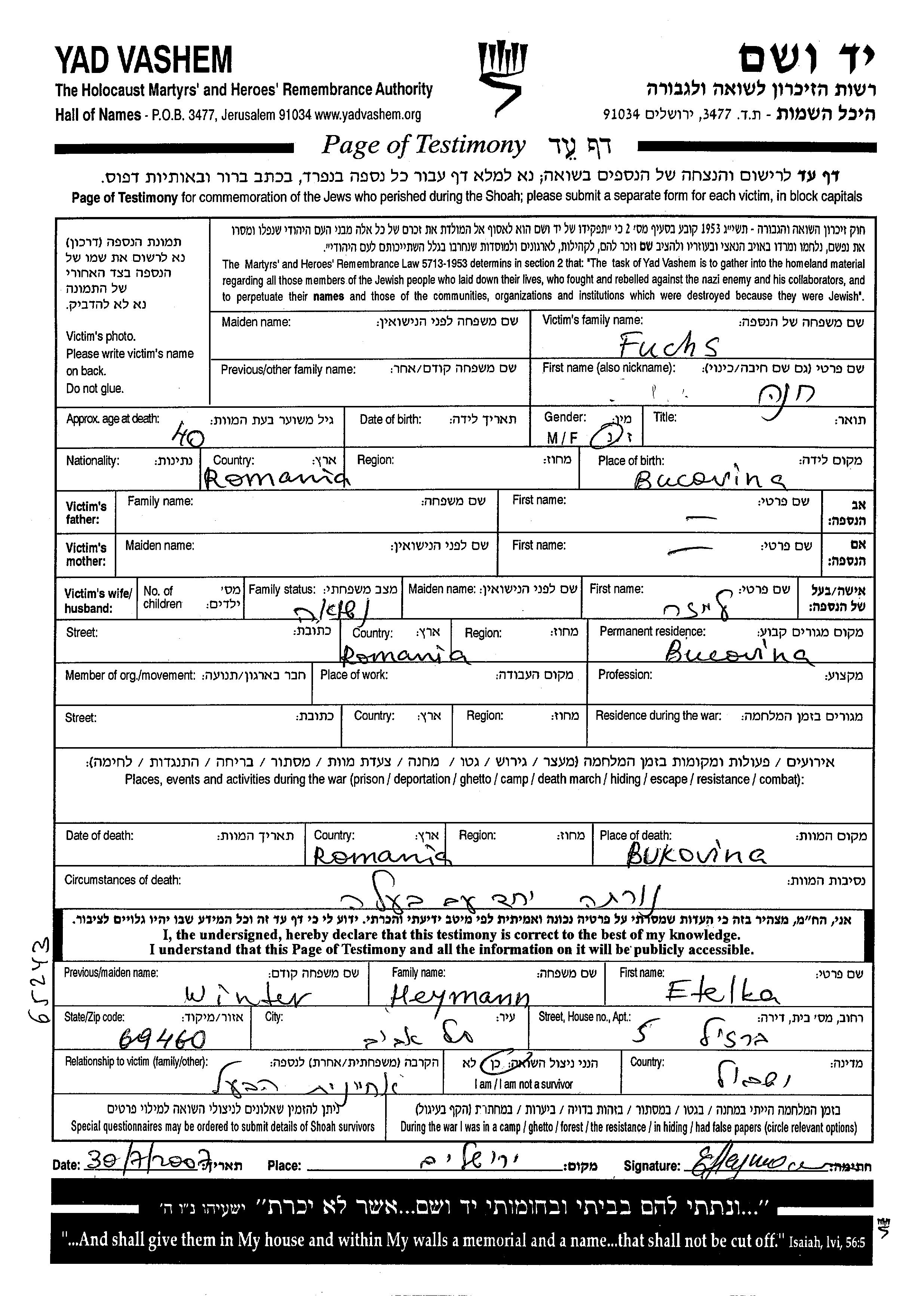 Yad Vashem - Pages of Testimony Names Memorial Collection