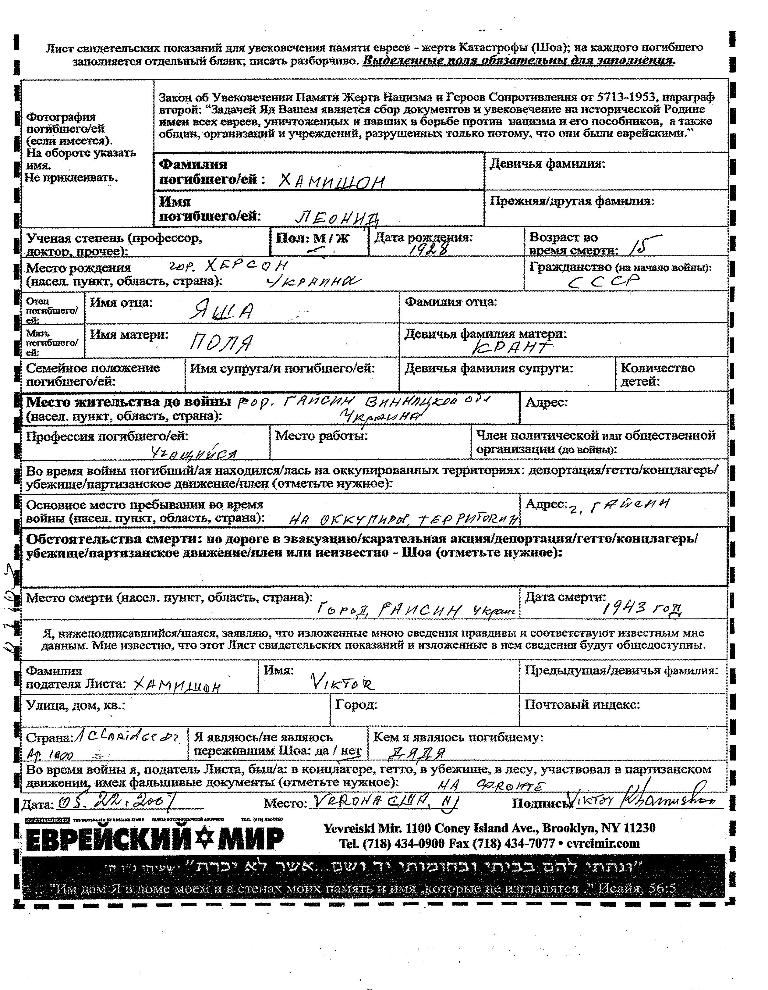 Search by last name of the submitter of the Page of Testimony, including diminutives or nicknames