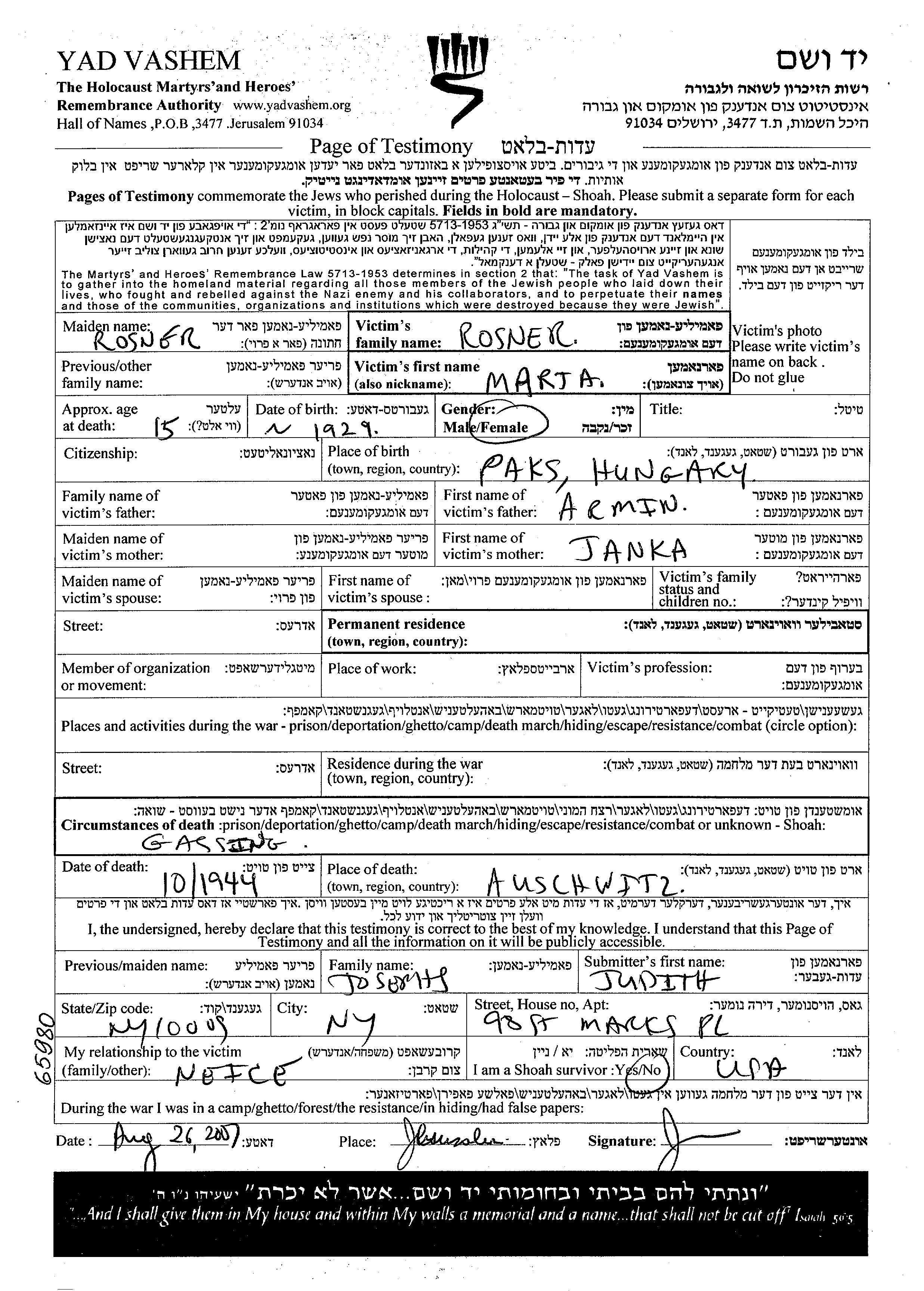 Yad Vashem - Pages of Testimony Names Memorial Collection