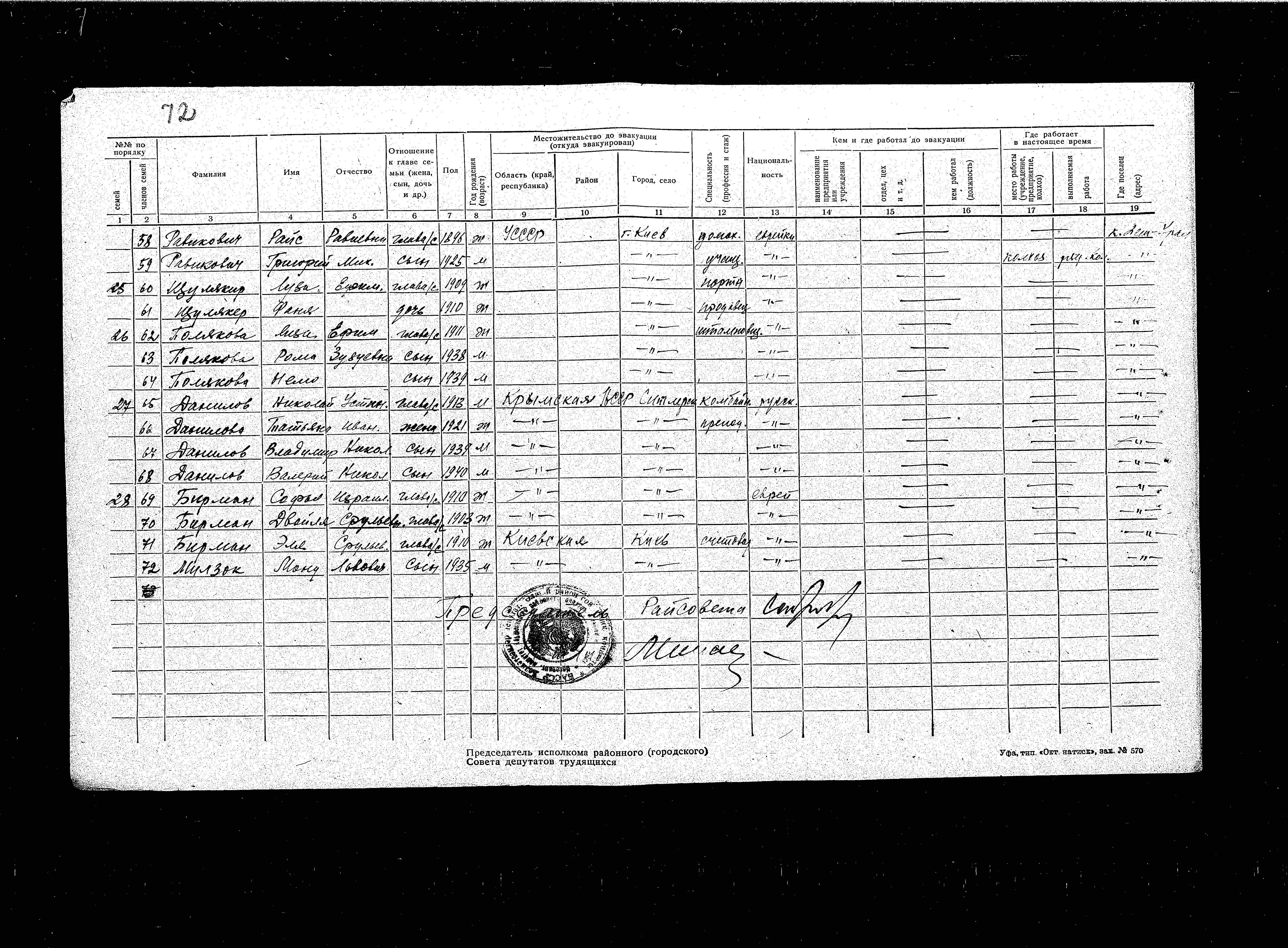 Dvoylya was registered following the evacuation/ in the interior of the Soviet Union.