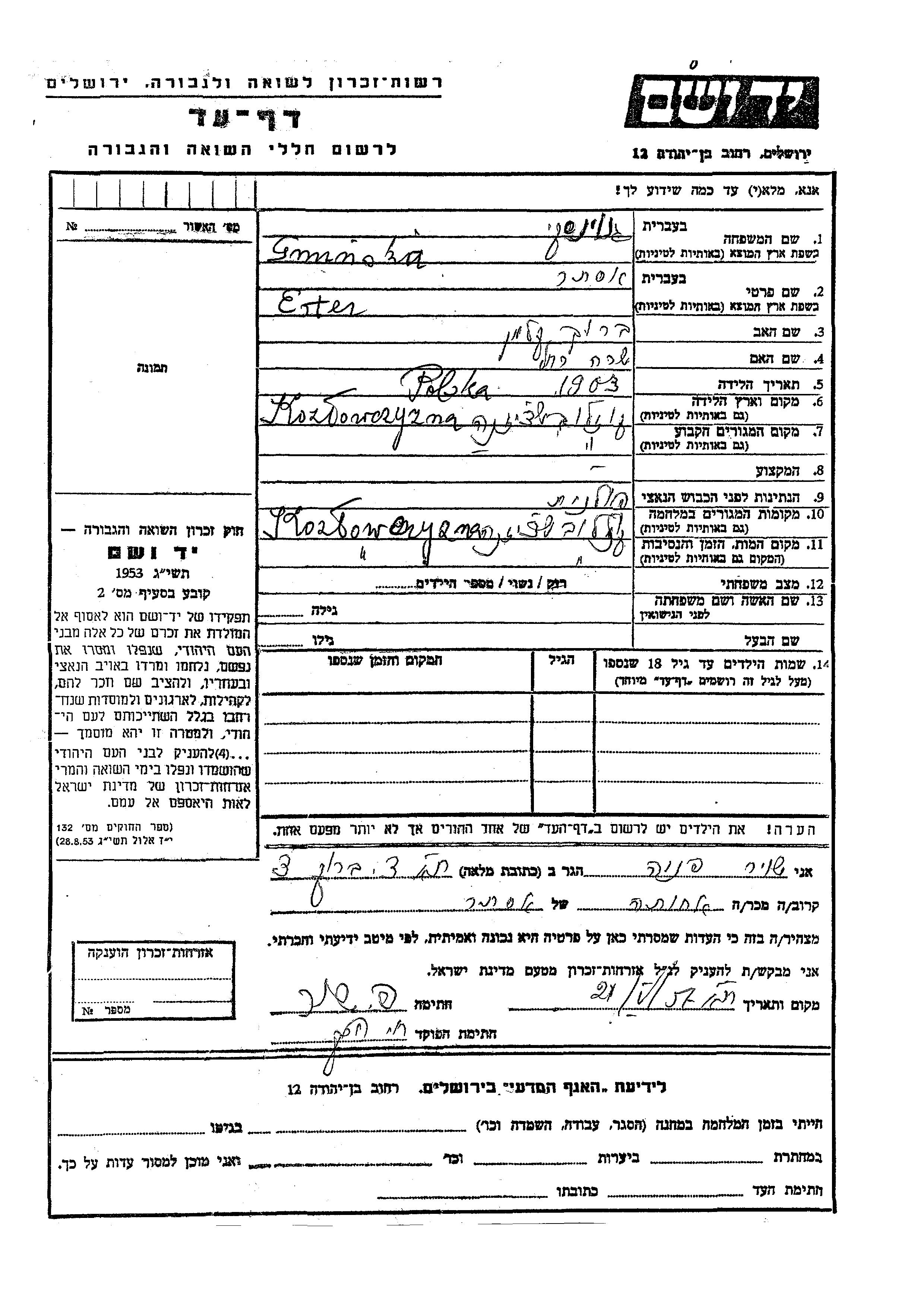 Ester Gnoinski was born in Kozlowszczyzna, Poland, 1903 to Barukh Kalman and Sara Rakhel. Prior to WWII she lived in Kozlowszczyzna, Poland. During the war she was in Kozlowszczyzna, Poland. Ester was murdered in the Shoah. Place of death: Kozlowszczyzna, Poland.