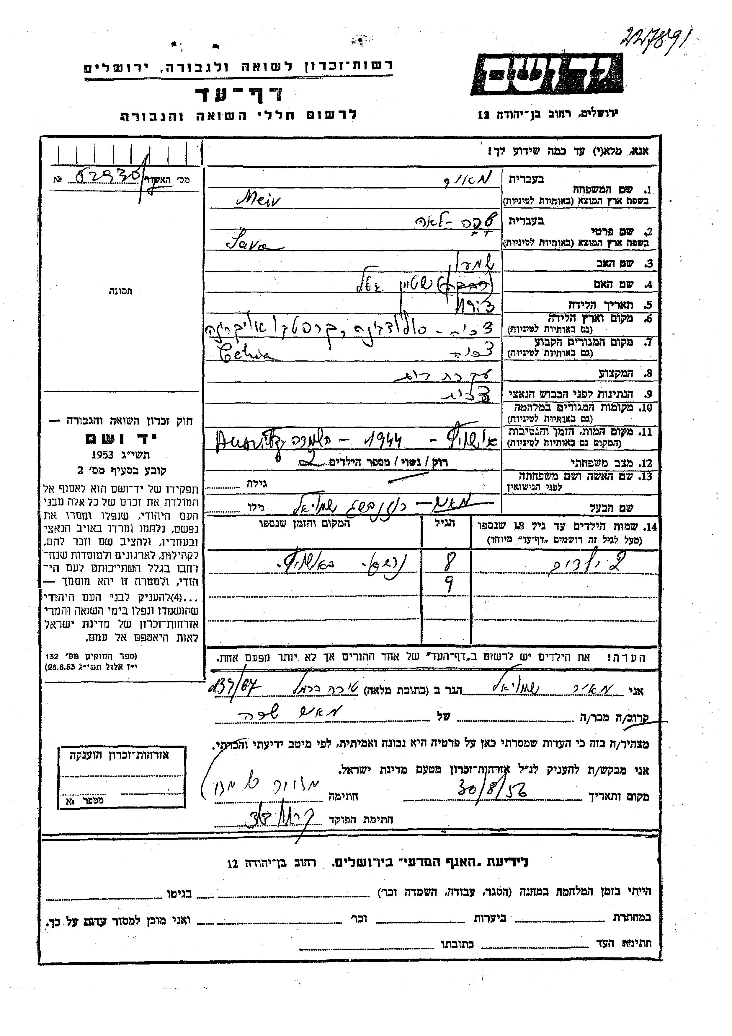 Sara Lea Rozenberg nee Meier was born in Solotvina, Czechoslovakia, 1913 to Shimon and Gitel. She was a housewife and married to Shmuel. Prior to WWII she lived in Czechoslovakia. Sara Lea was murdered in the Shoah. Place of death: Auschwitz, Poland, 1944.