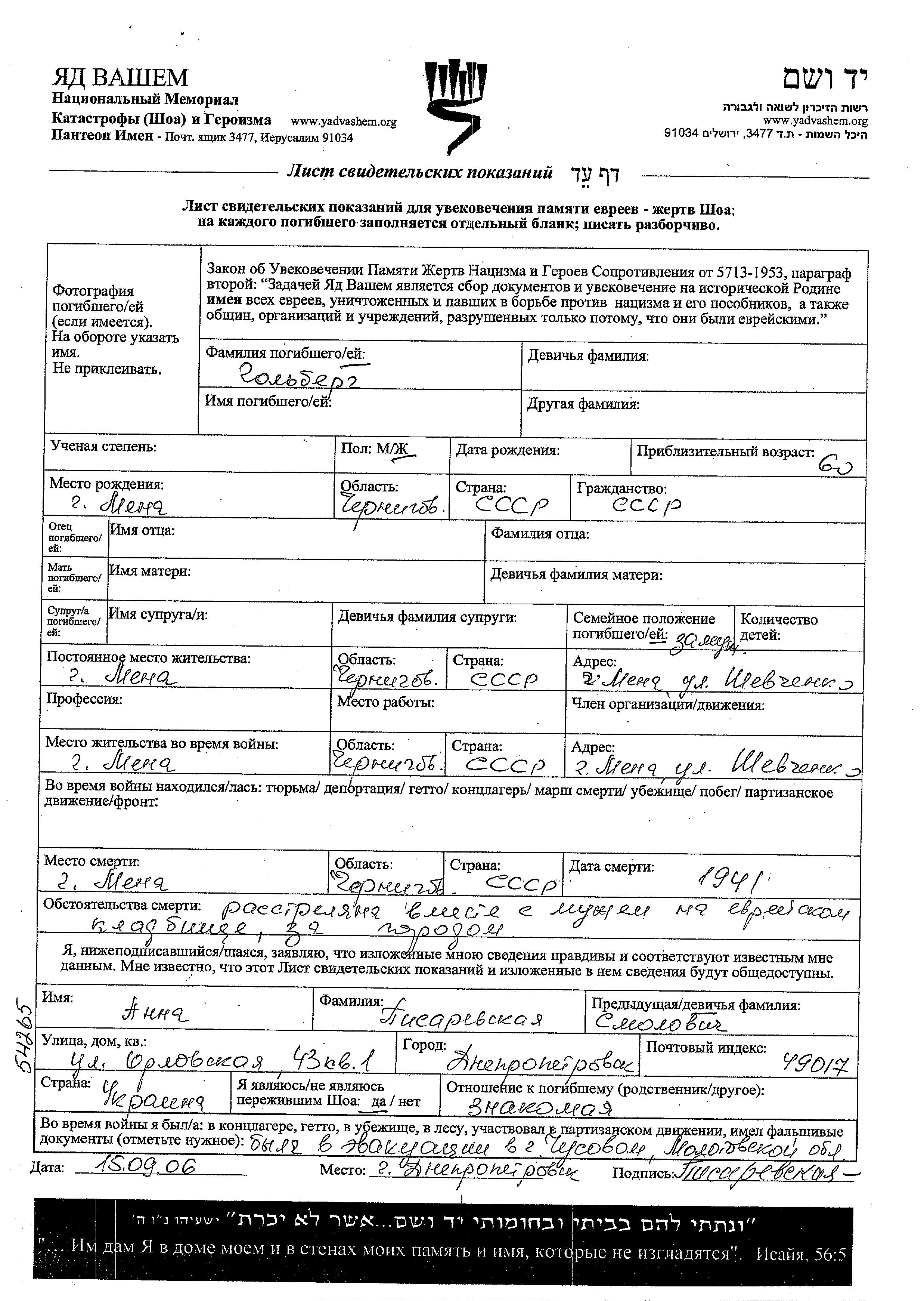 Golberg First name unknown Mena, Ukraine (USSR) Page of Testimony