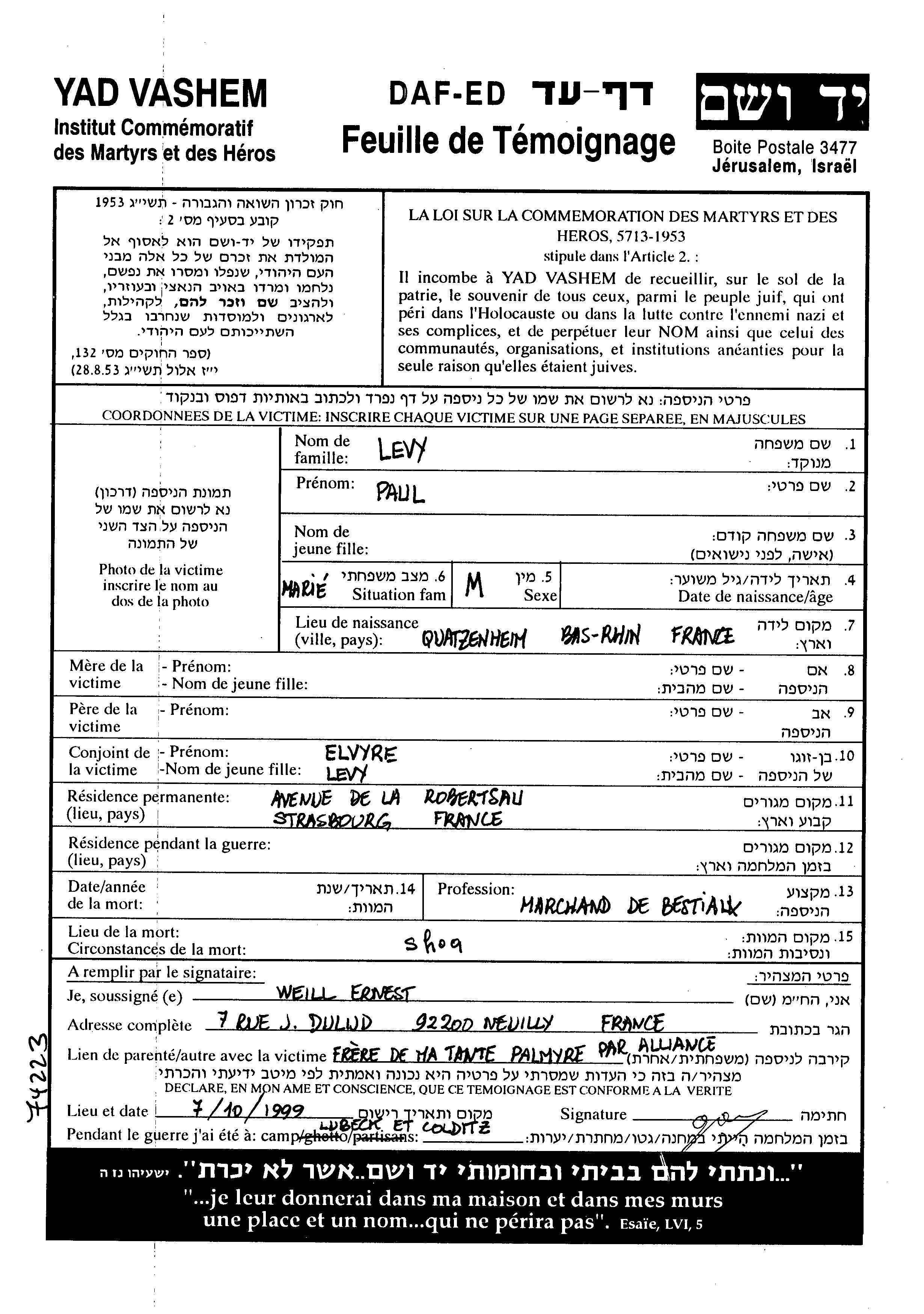 Search by last name of the submitter of the Page of Testimony, including diminutives or nicknames