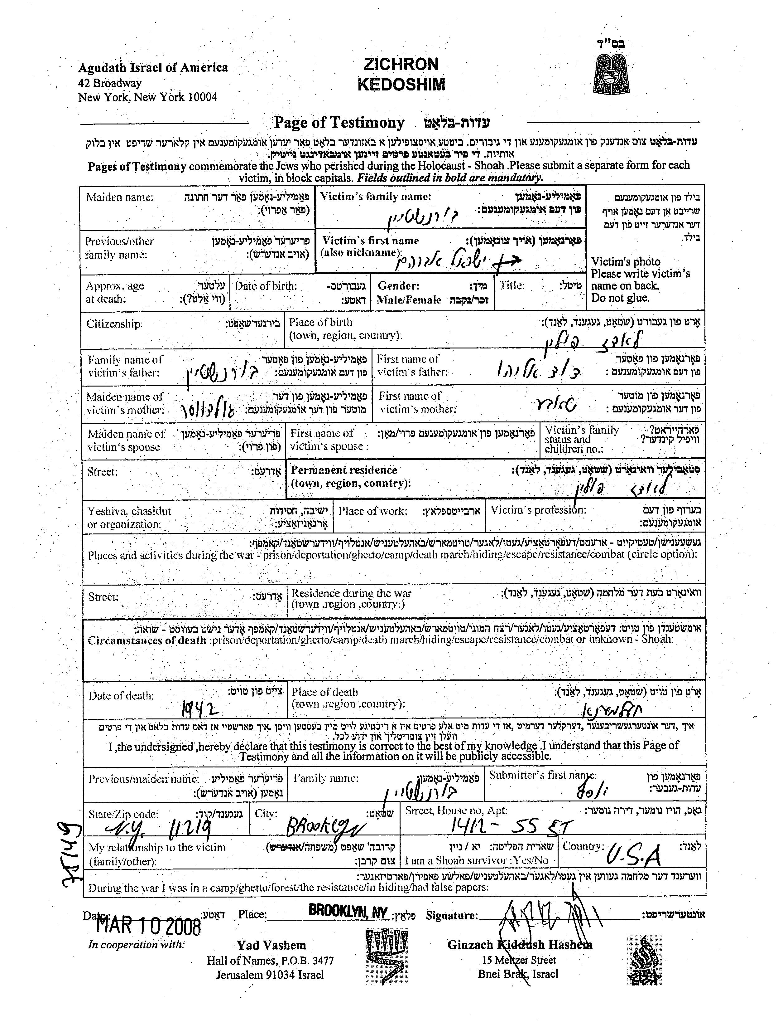 Yisrael Avraham Bornshtein was born in Lodz, Poland to David Eliahu and Tove nee Goldvaser. Prior to WWII he lived in Lodz, Poland. Yisrael Avraham was murdered in the Shoah. Place of death: Chelmno, Poland.