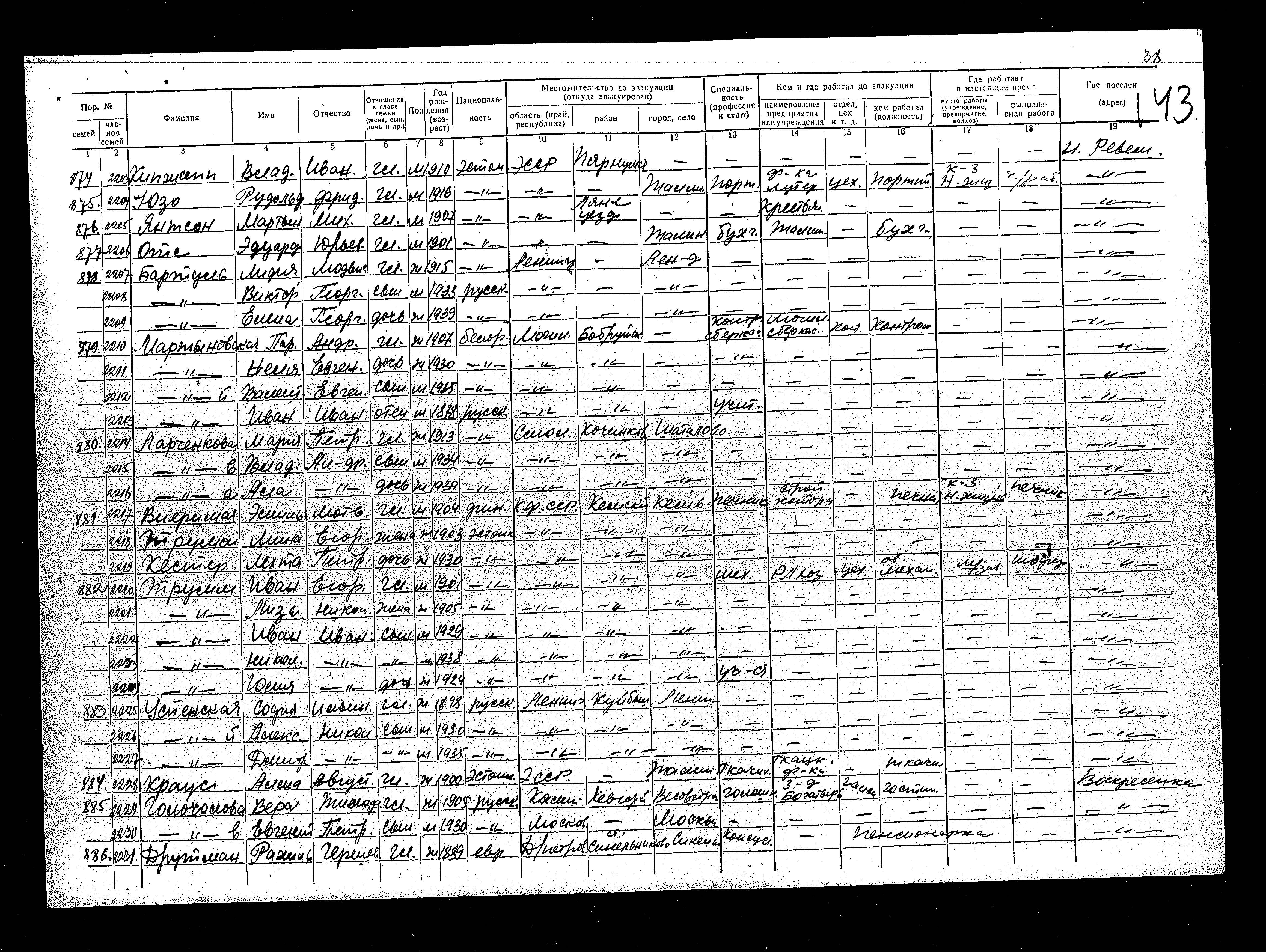 Was Registered Following the Evacuation/ in the Interior of the Soviet Union