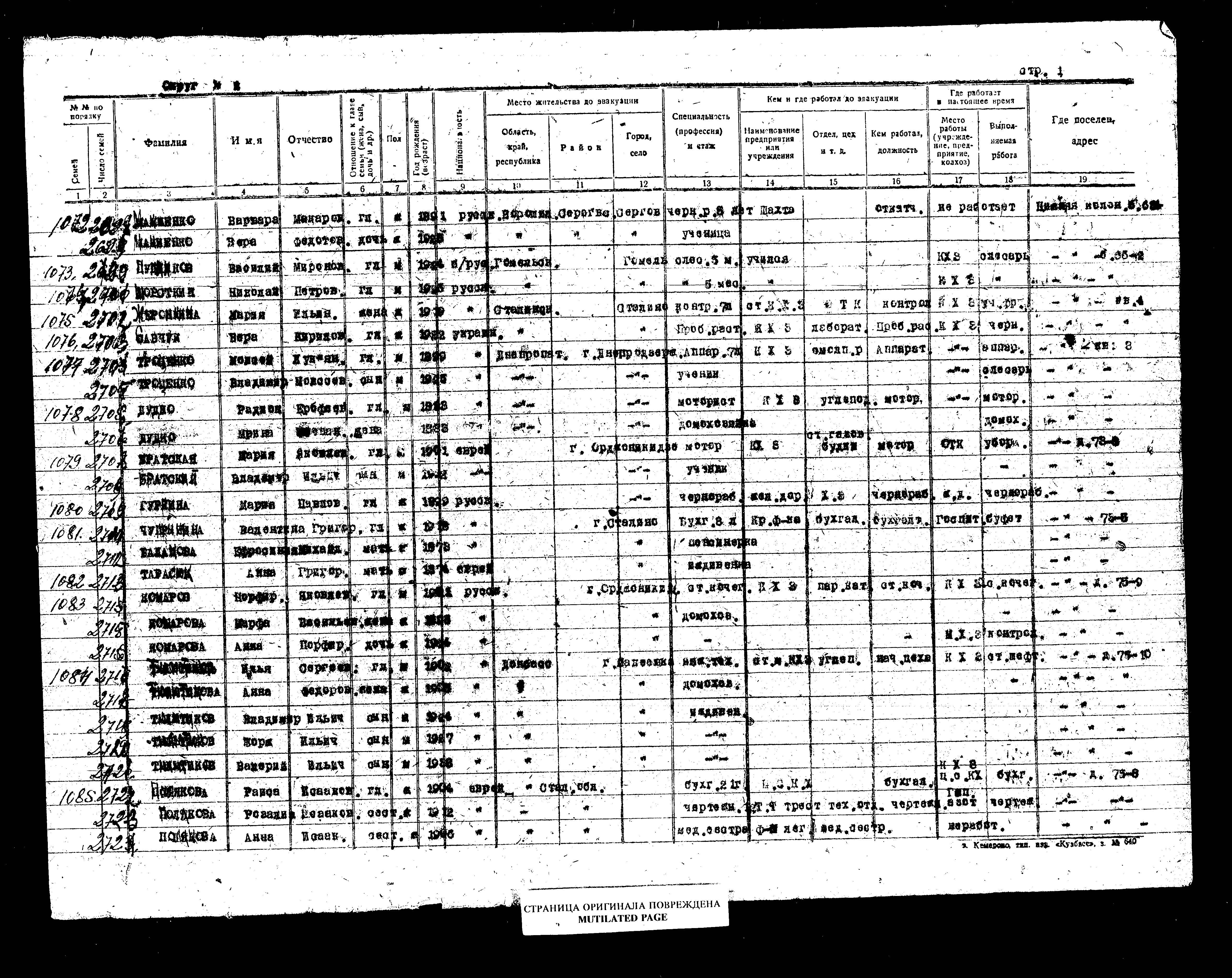 Was Registered Following the Evacuation/ in the Interior of the Soviet Union