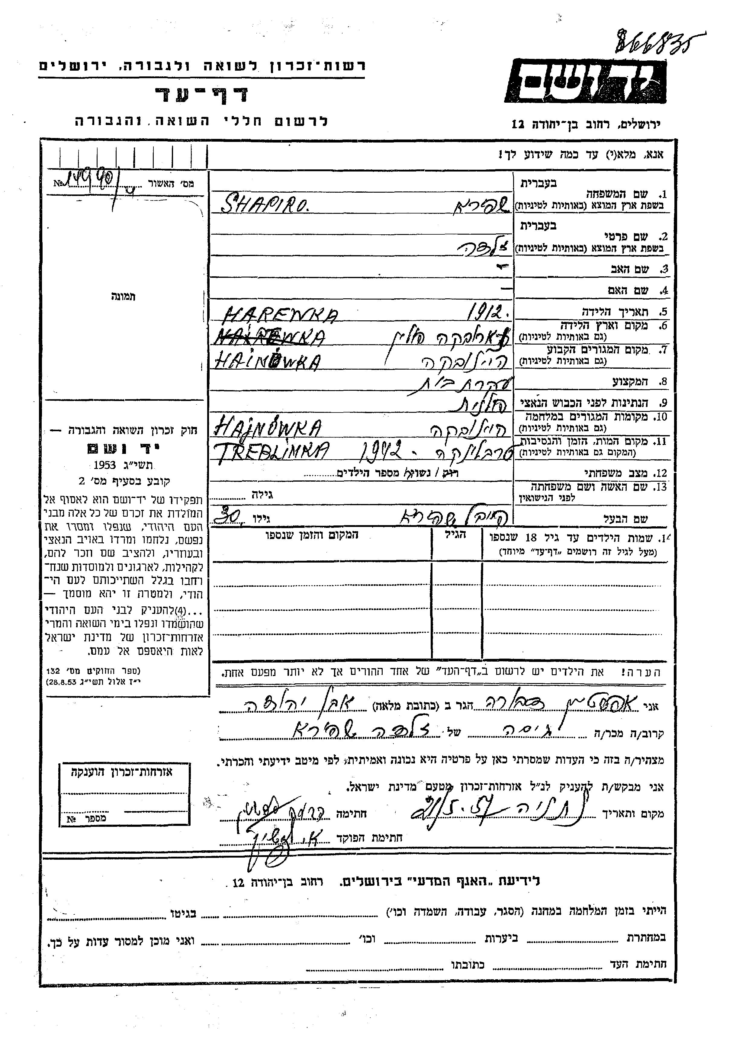 Elda Shapiro was born in Hajnówka, Poland, 1912. She was a housewife and married to Faivel. Prior to WWII she lived in Hajnówka, Poland. During the war she was in Hajnówka, Poland. Elda was murdered in the Shoah. Place of death: Treblinka, Poland, 1942.