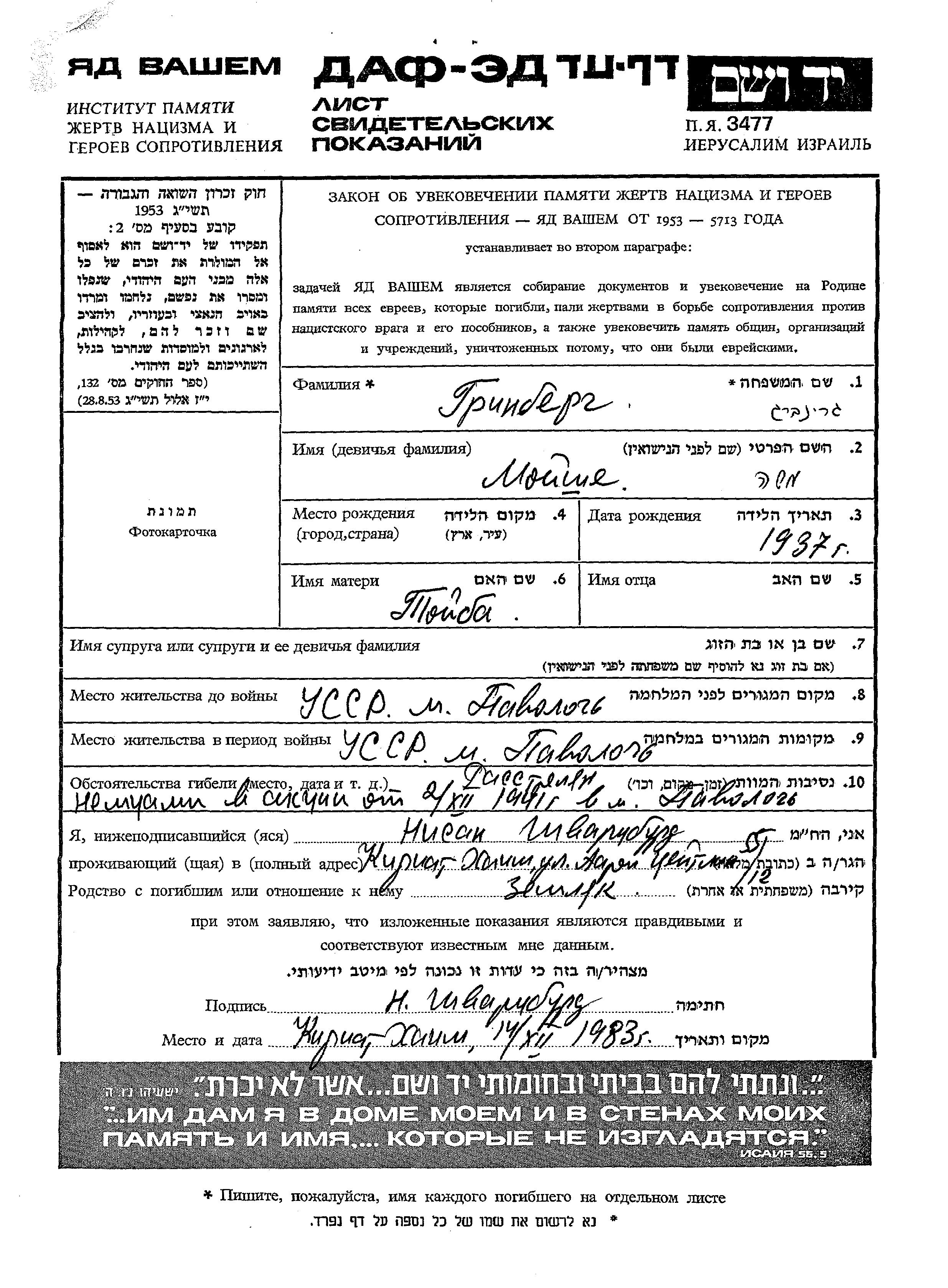 Search by last name of the submitter of the Page of Testimony, including diminutives or nicknames