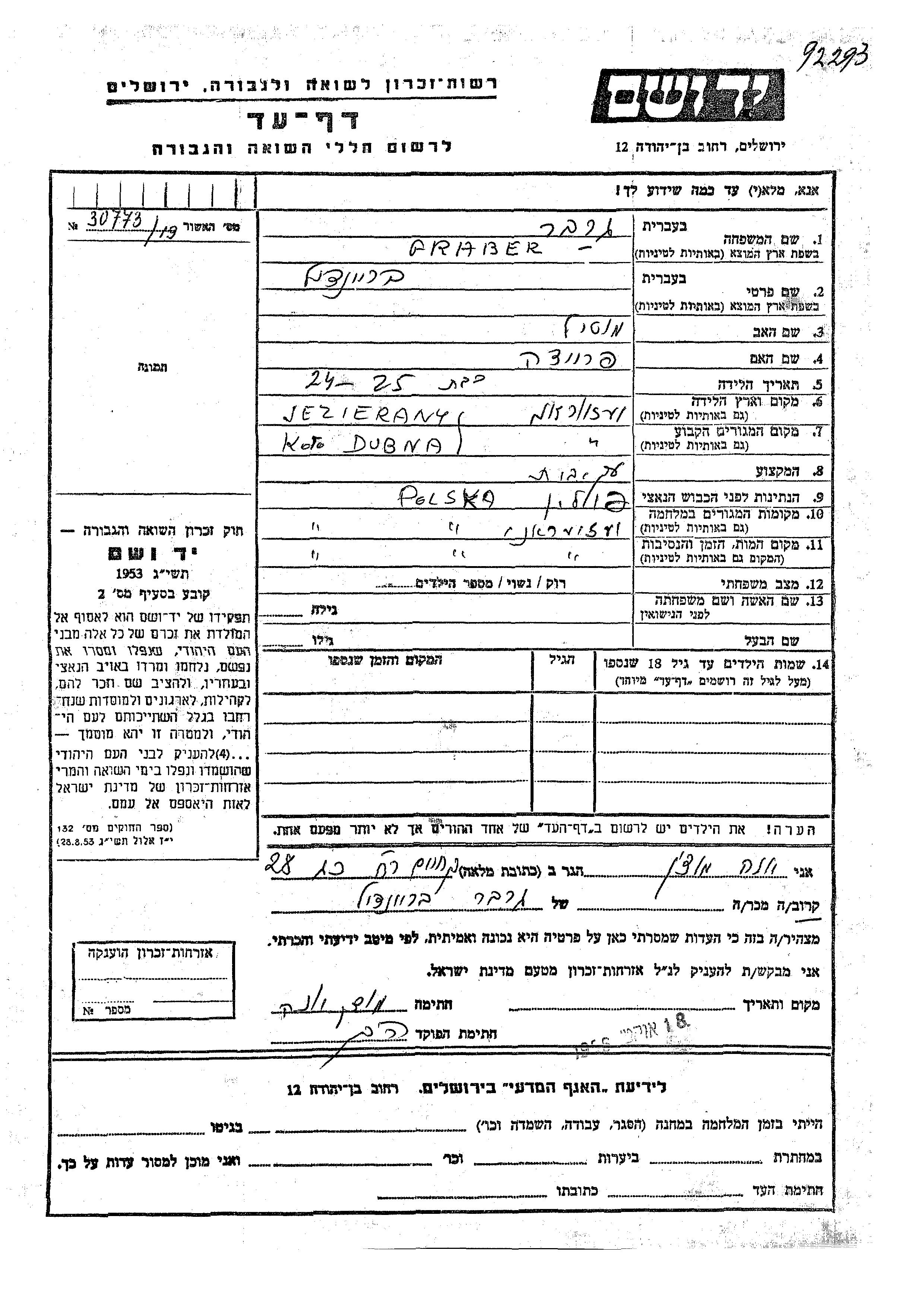 Breindil Graber was born in Jeziorany, Poland to Motil and Freida. She was a housewife. Prior to WWII she lived in Jeziorany, Poland. During the war she was in Jeziorany, Poland. Breindil was murdered in the Shoah. Place of death: Jeziorany, Poland.