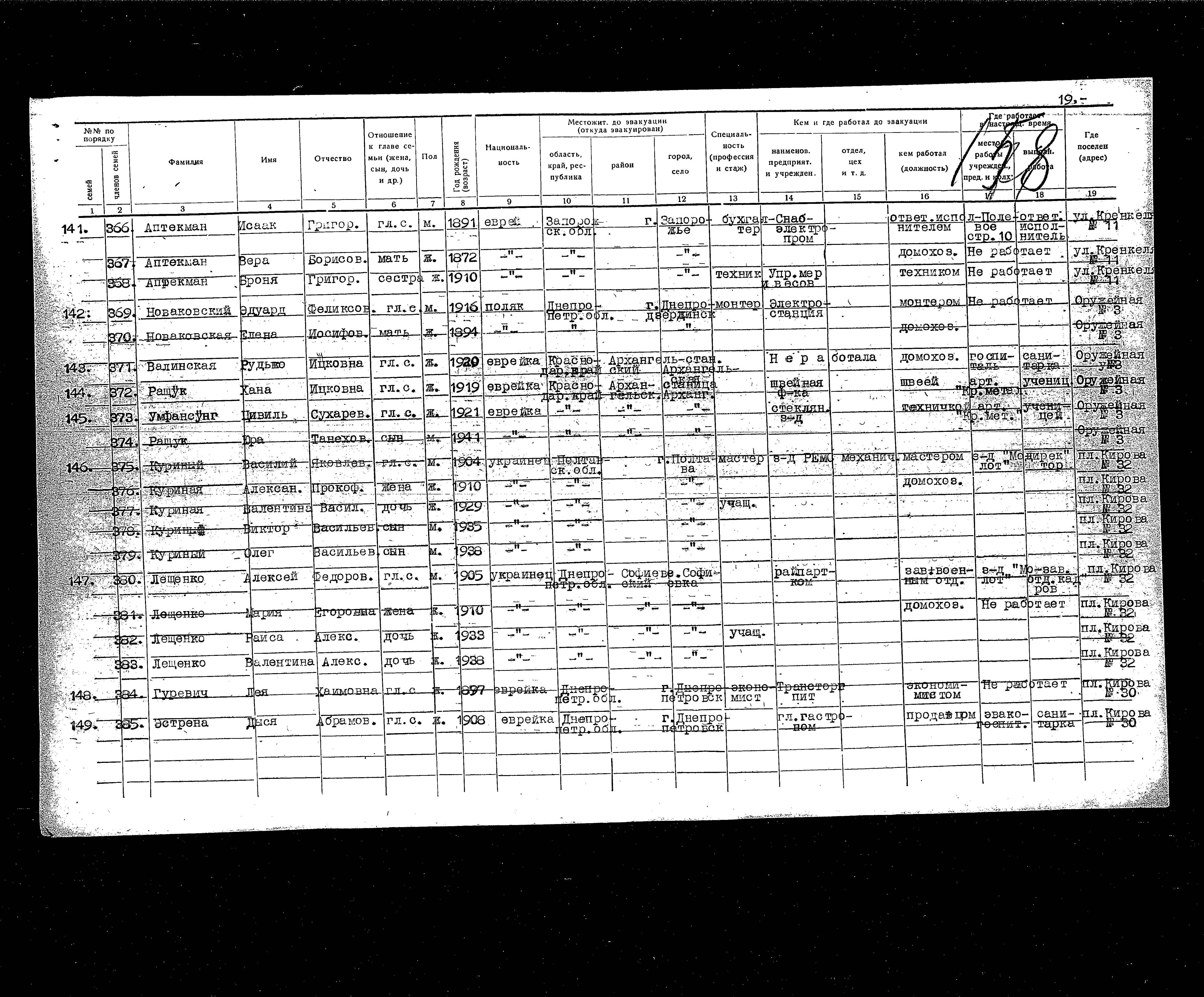 Rudko Valinskaya was born, 1929 to Itzik. She was child. Prior to WWII she lived in Arkhangelskaya, Russia (USSR). During the war she was in Cherkessk, Russia (USSR). Rudko was registered following the evacuation/ in the interior of the Soviet Union.