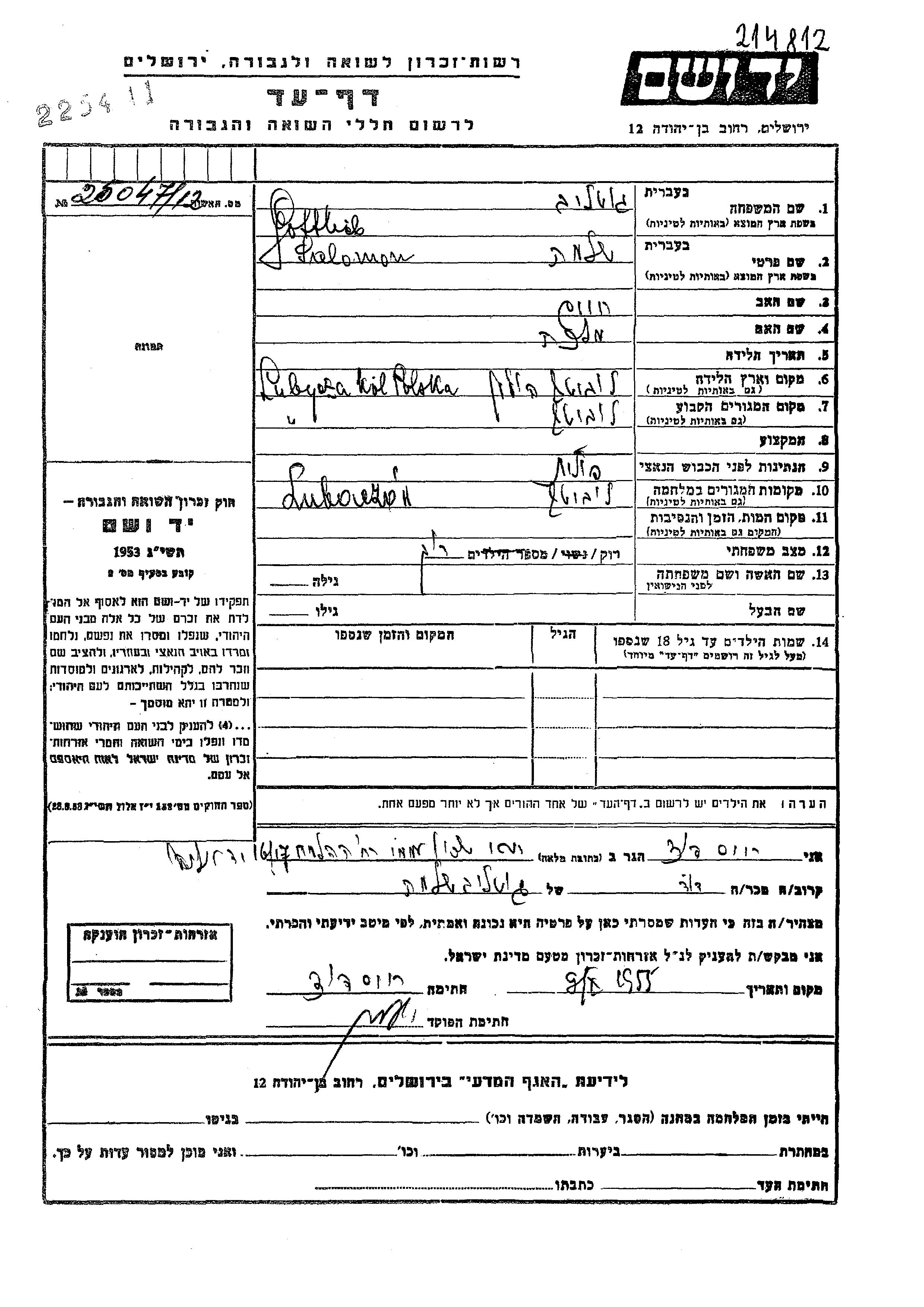 Yad Vashem - Pages of Testimony Names Memorial Collection