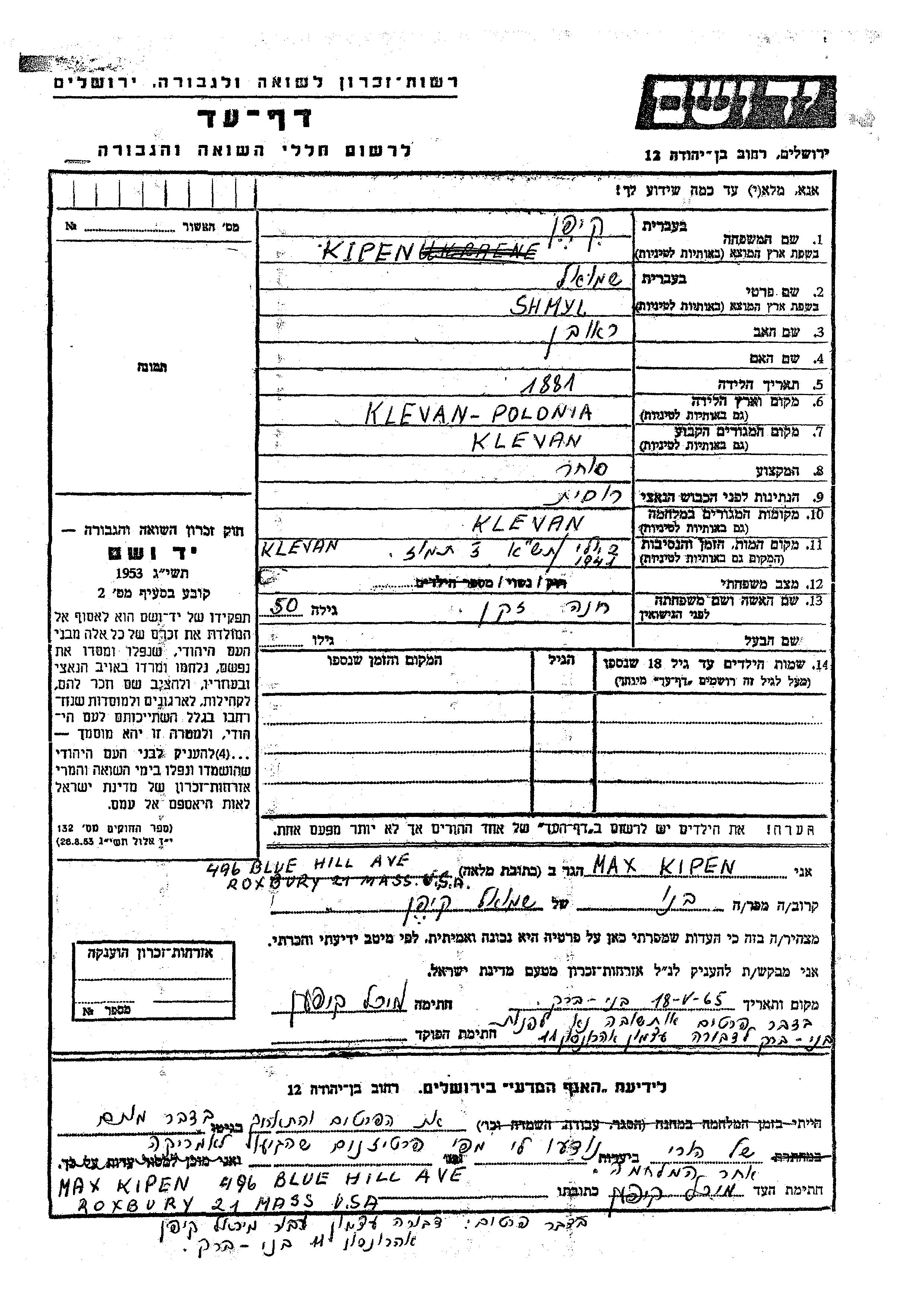 Kipen Samyl 1881 Klevan, Poland Page of Testimony