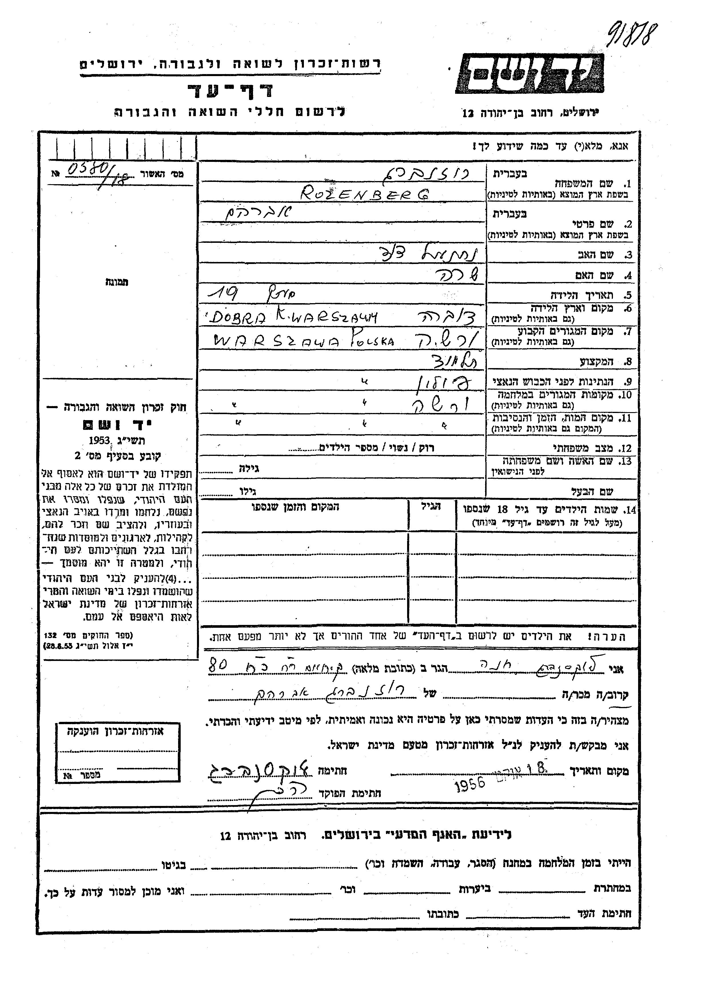 Rozenberg Avraham Warszawa, Poland Page of Testimony