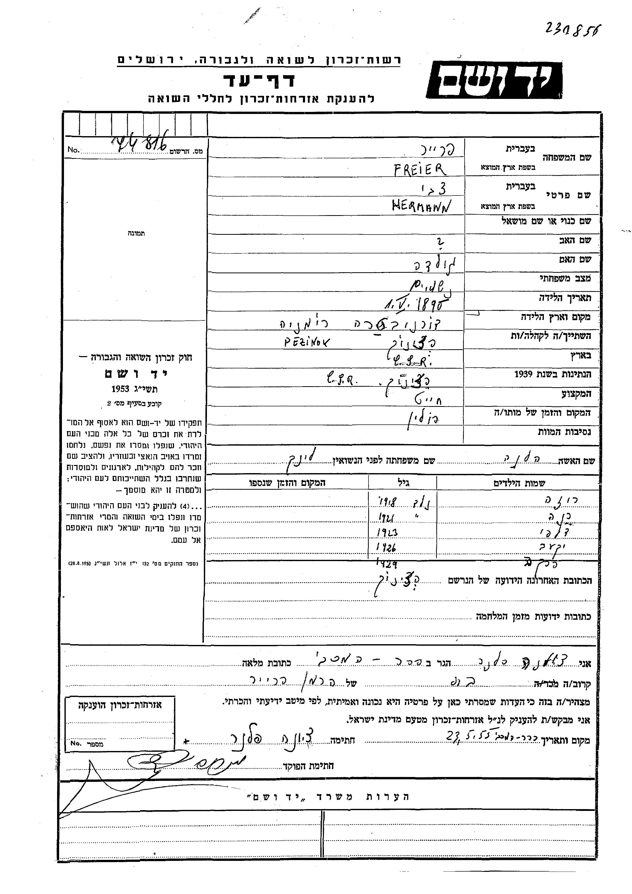 Yad Vashem - Pages of Testimony Names Memorial Collection