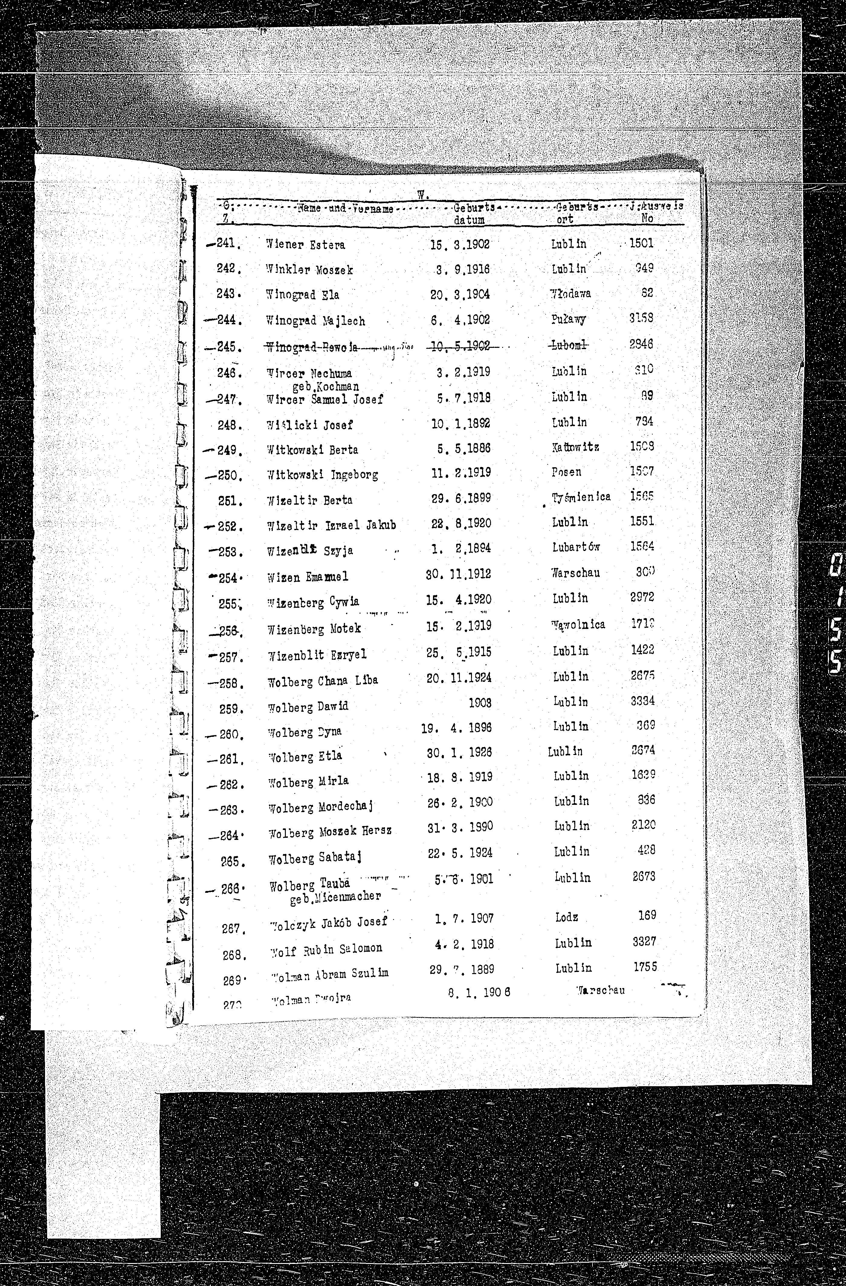 Wizenberg Motek 1919 Poland List of persecuted persons