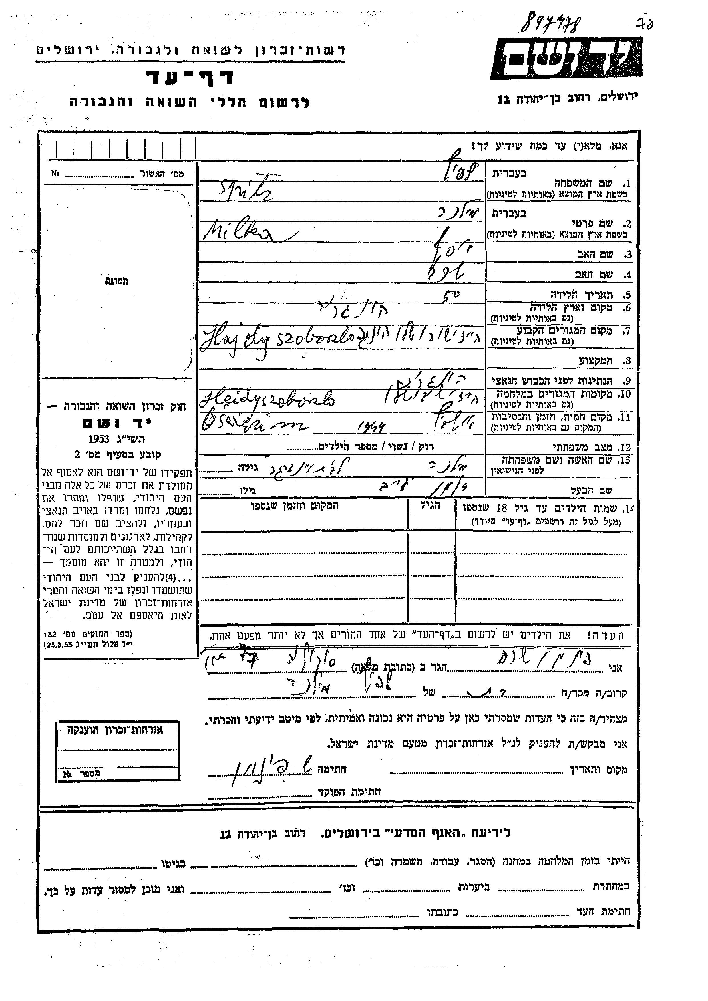 Yad Vashem - Pages of Testimony Names Memorial Collection