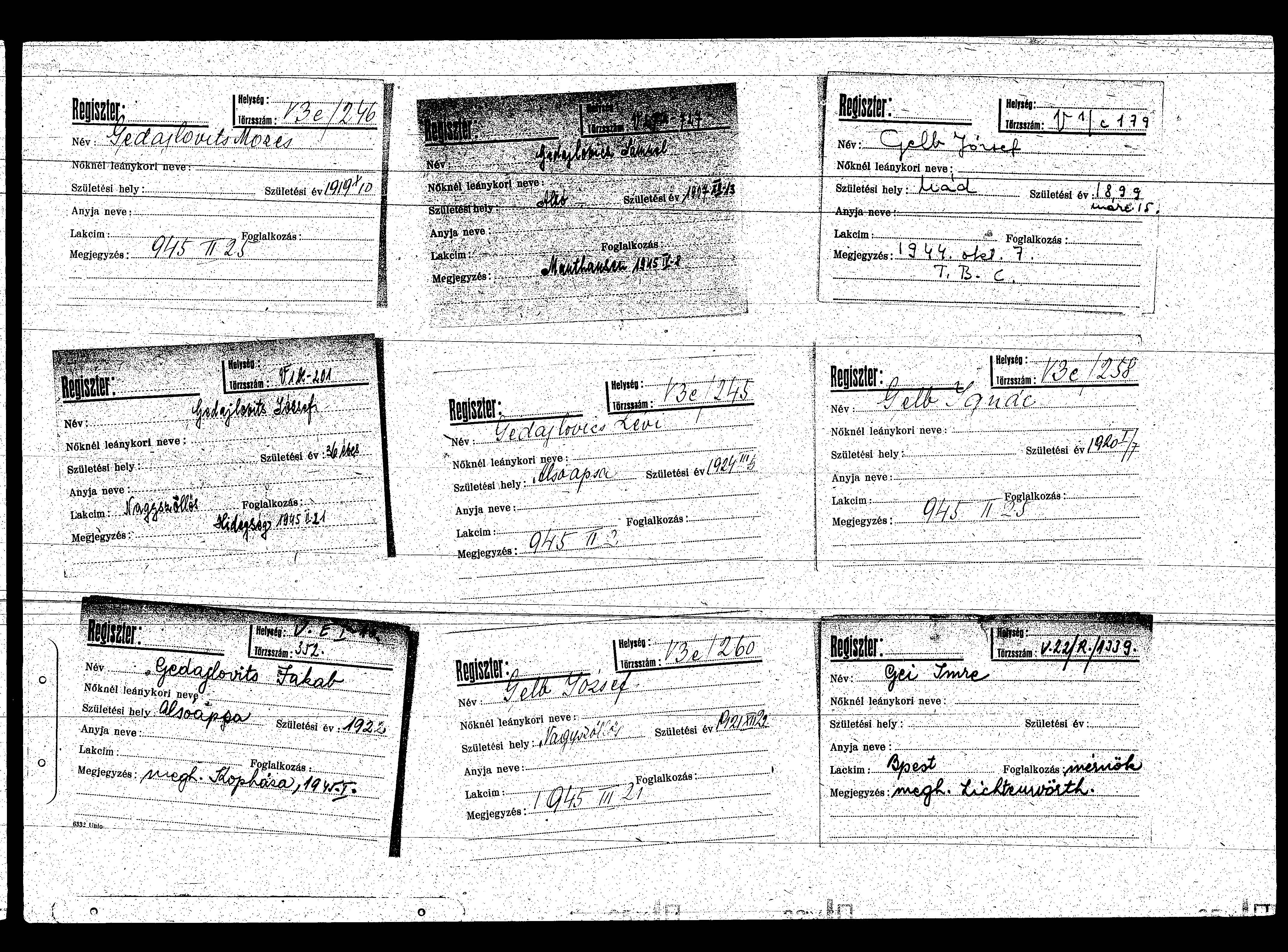 Jozsef Gedajlovits. Prior to WWII he lived in Nagyszollos, Czechoslovakia. During the war he was in Hidegseg, Hungary.