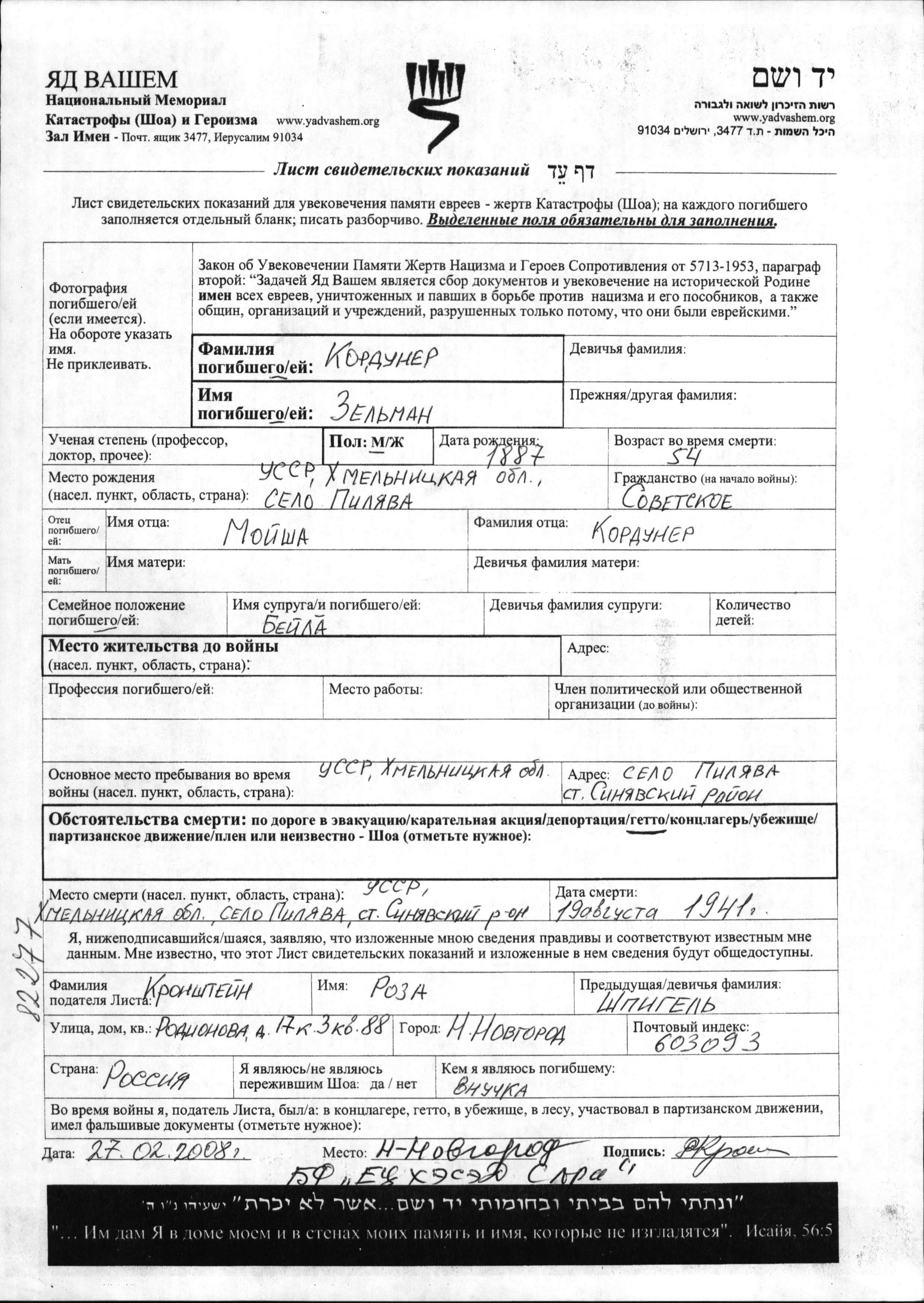 Search by last name of the submitter of the Page of Testimony, including diminutives or nicknames