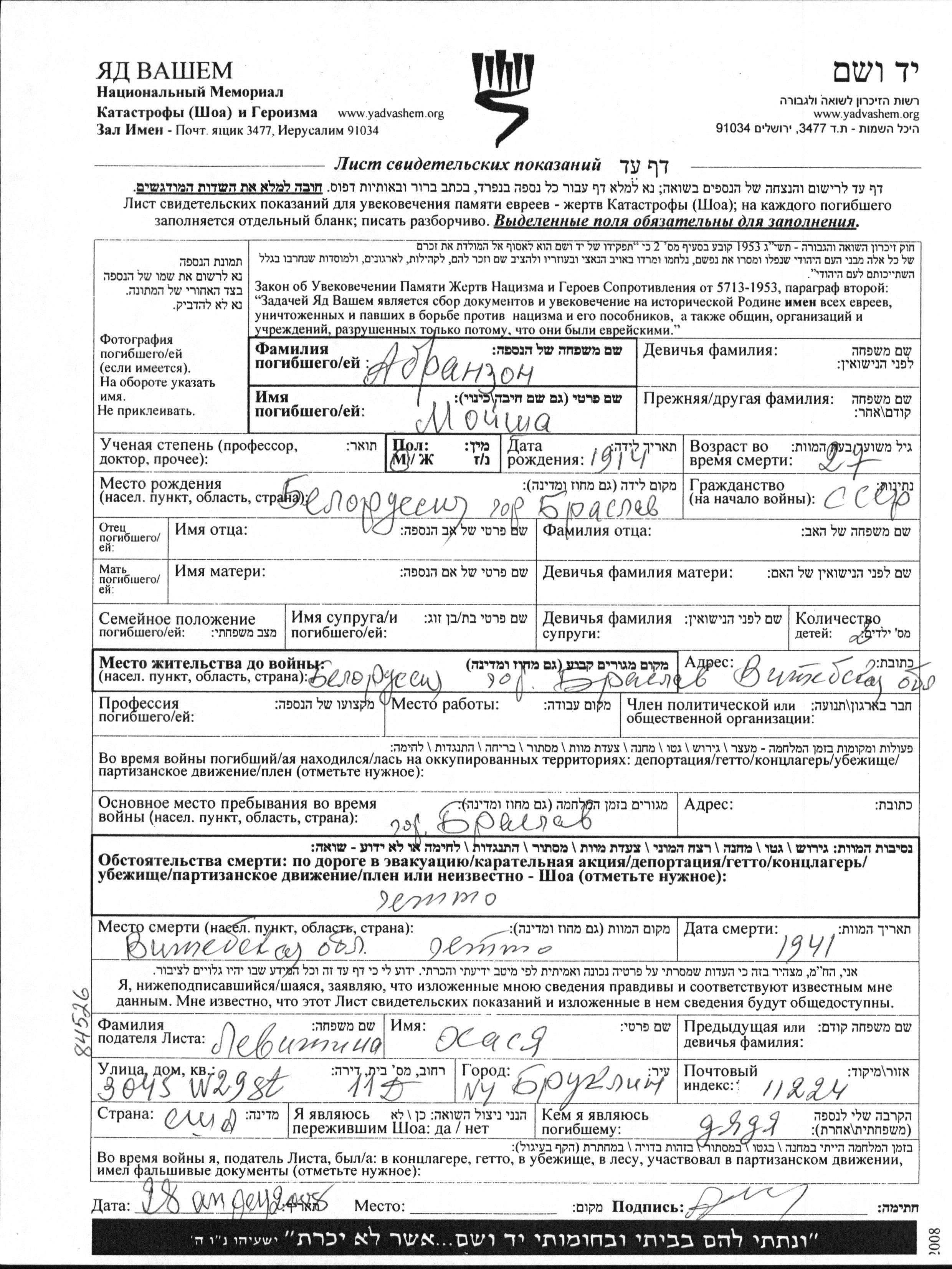 Yad Vashem - Pages of Testimony Names Memorial Collection