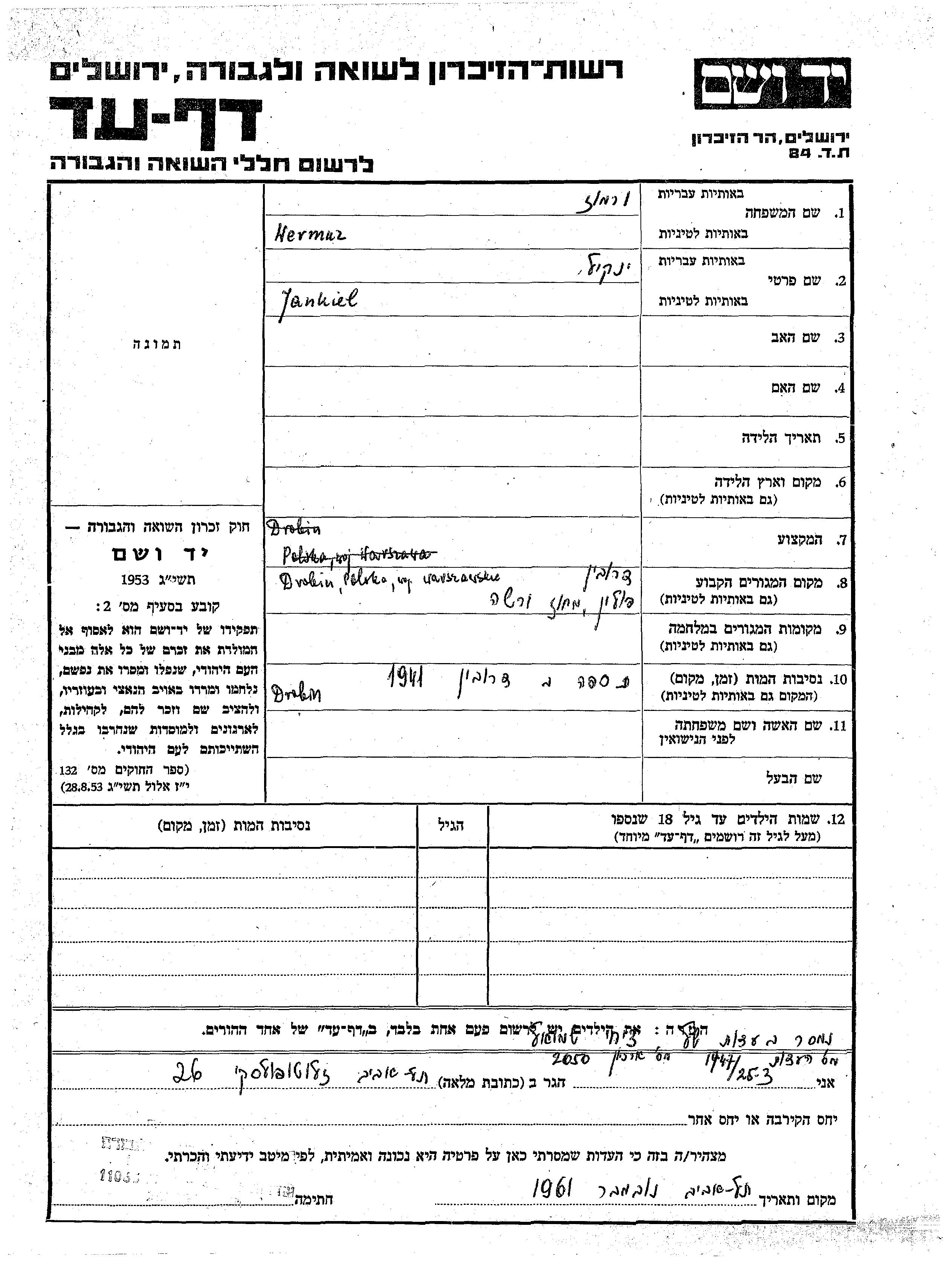 Wermuz Yankiel Drobin, Poland Page of Testimony