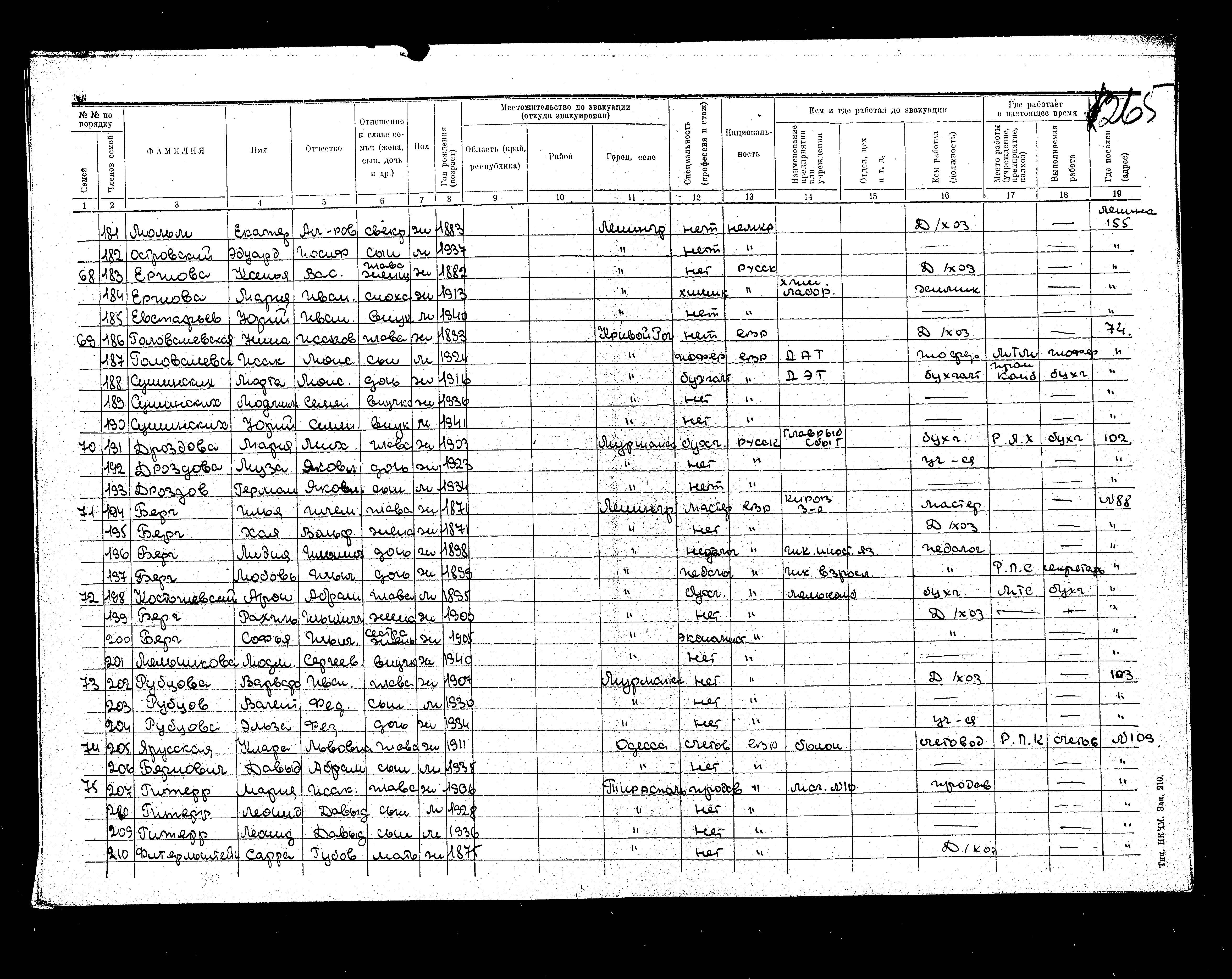 Berg Khaya 1871 Leningrad, Russia (USSR) List of evacuated persons