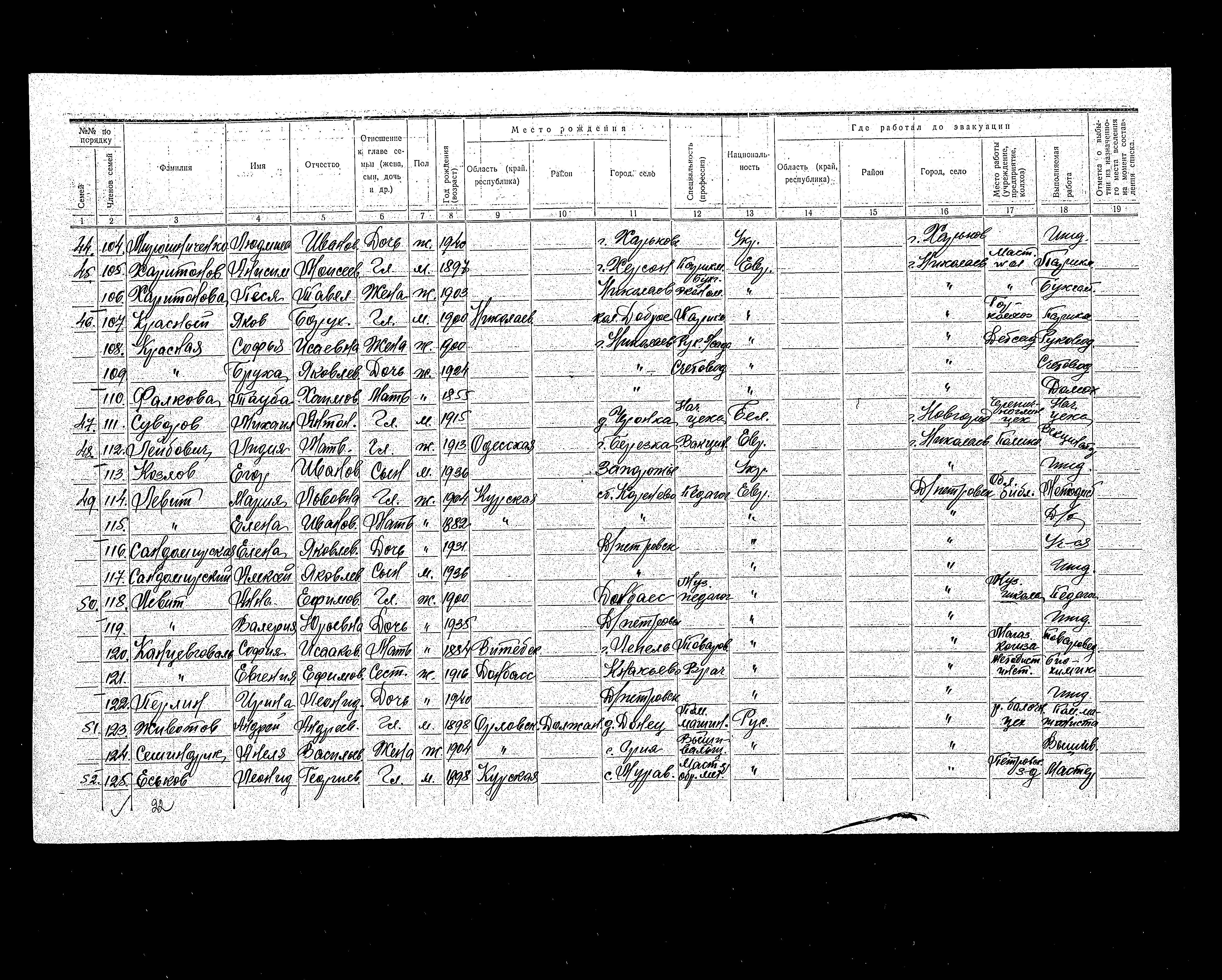 Kantzevgoval Sofia 1884 Dnepropetrovsk, Ukraine (USSR) List of evacuated persons
