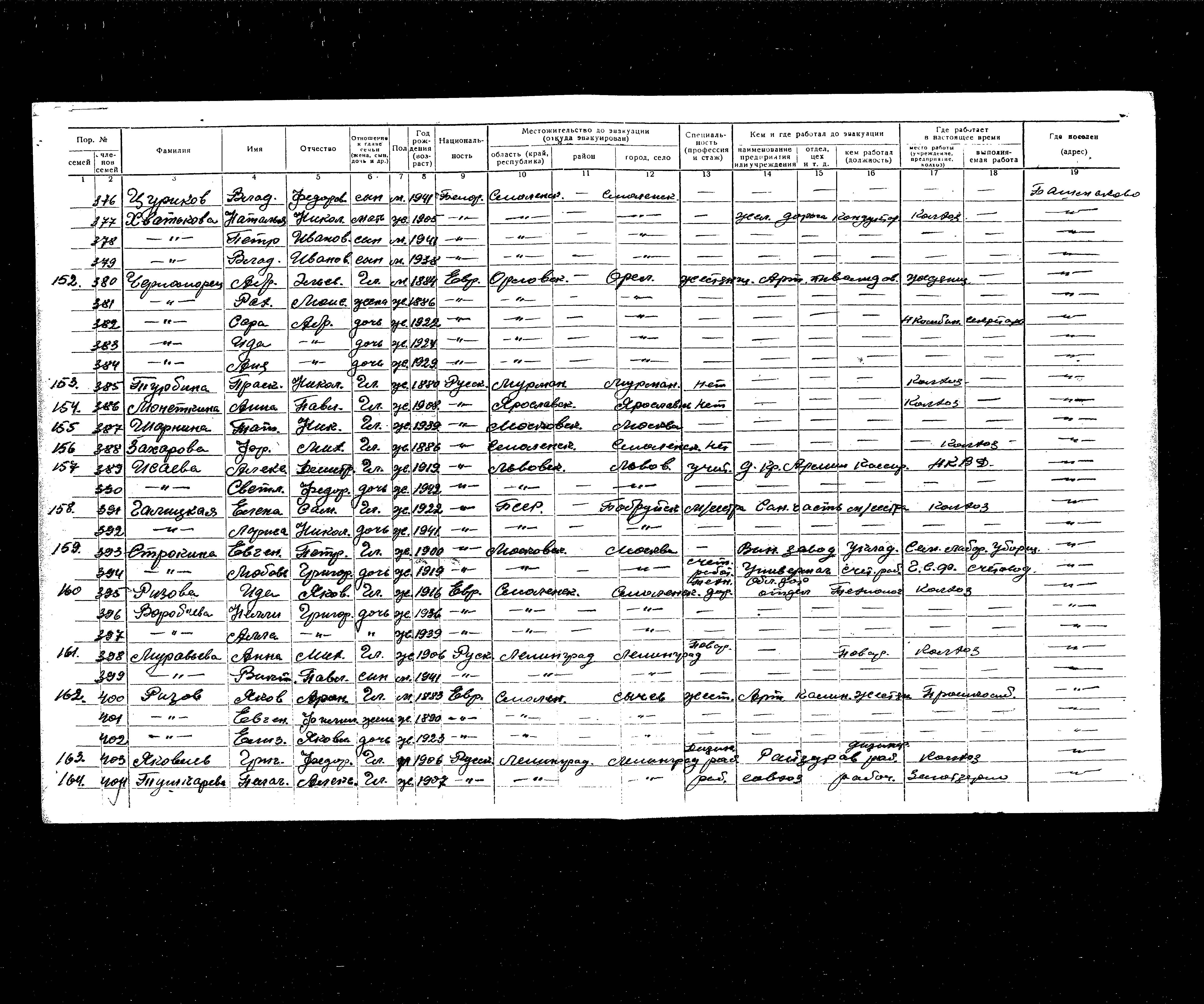 Yevgeniya Rizova was born, 1890 to F. She was married to Yakov. Prior to WWII she lived in Sychevka, Russia (USSR). During the war she was in Bashmakovo, Russia (USSR). Yevgeniya was registered following the evacuation/ in the interior of the Soviet Union.