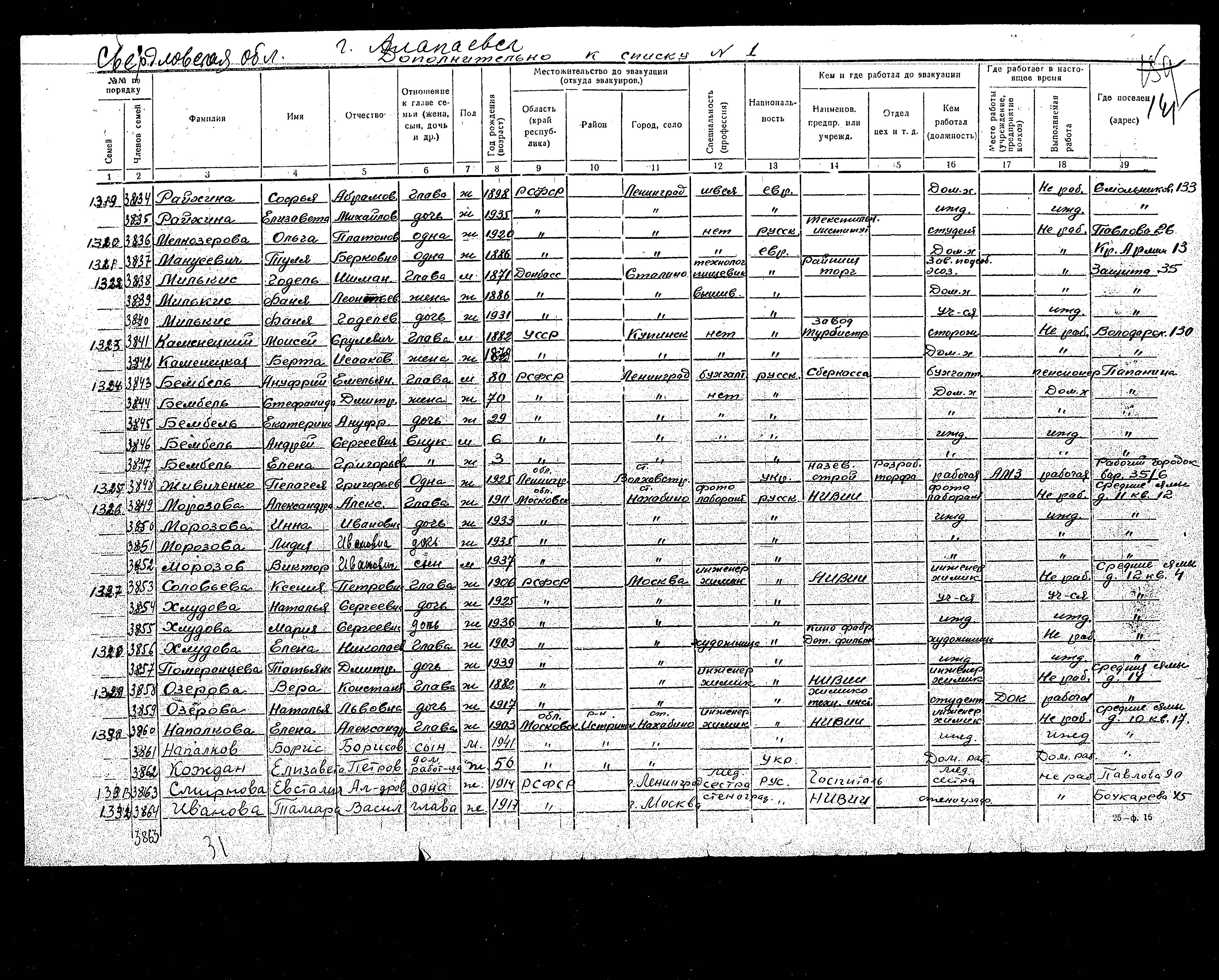 Was Registered Following the Evacuation/ in the Interior of the Soviet Union