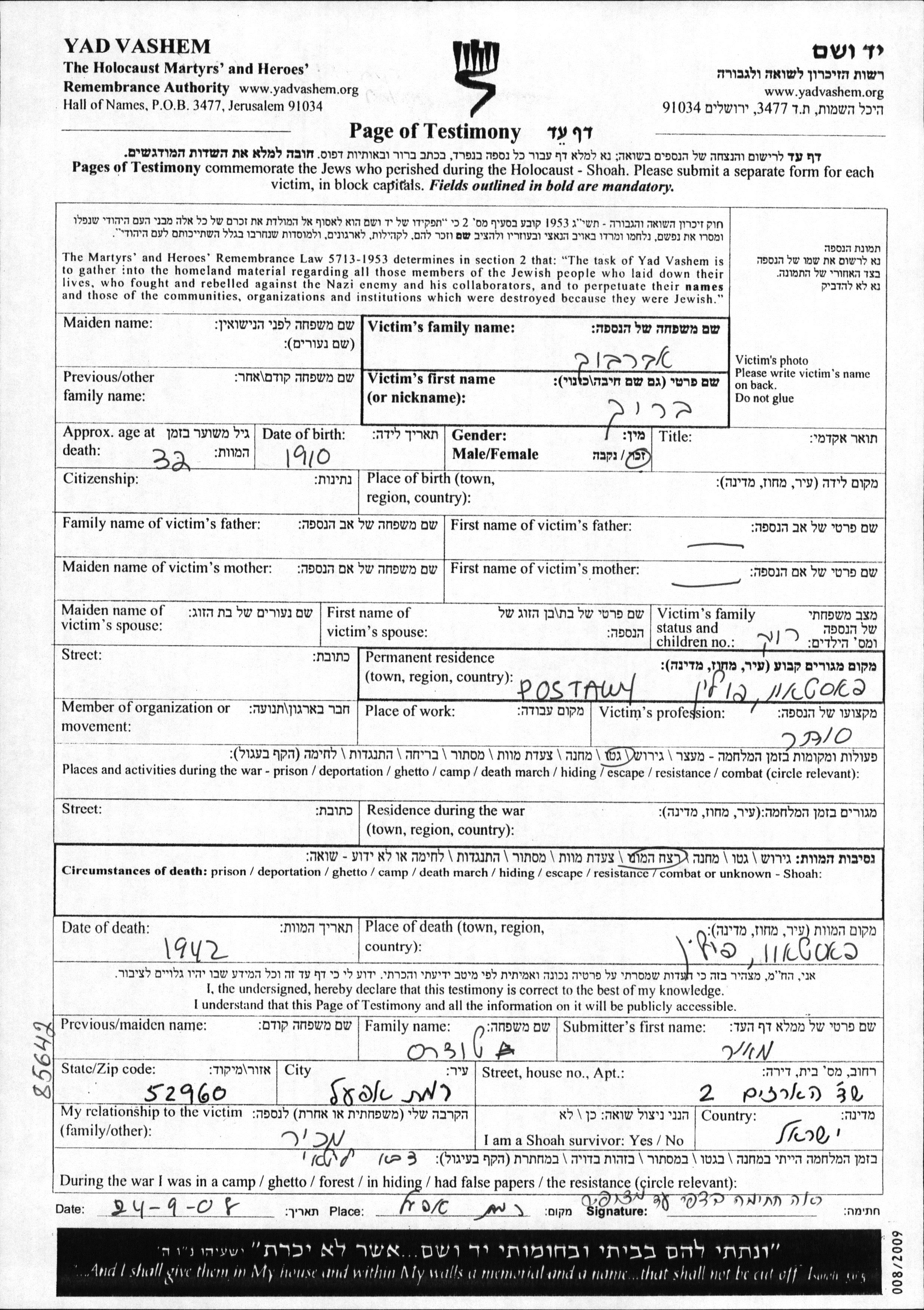 Search by last name of the submitter of the Page of Testimony, including diminutives or nicknames