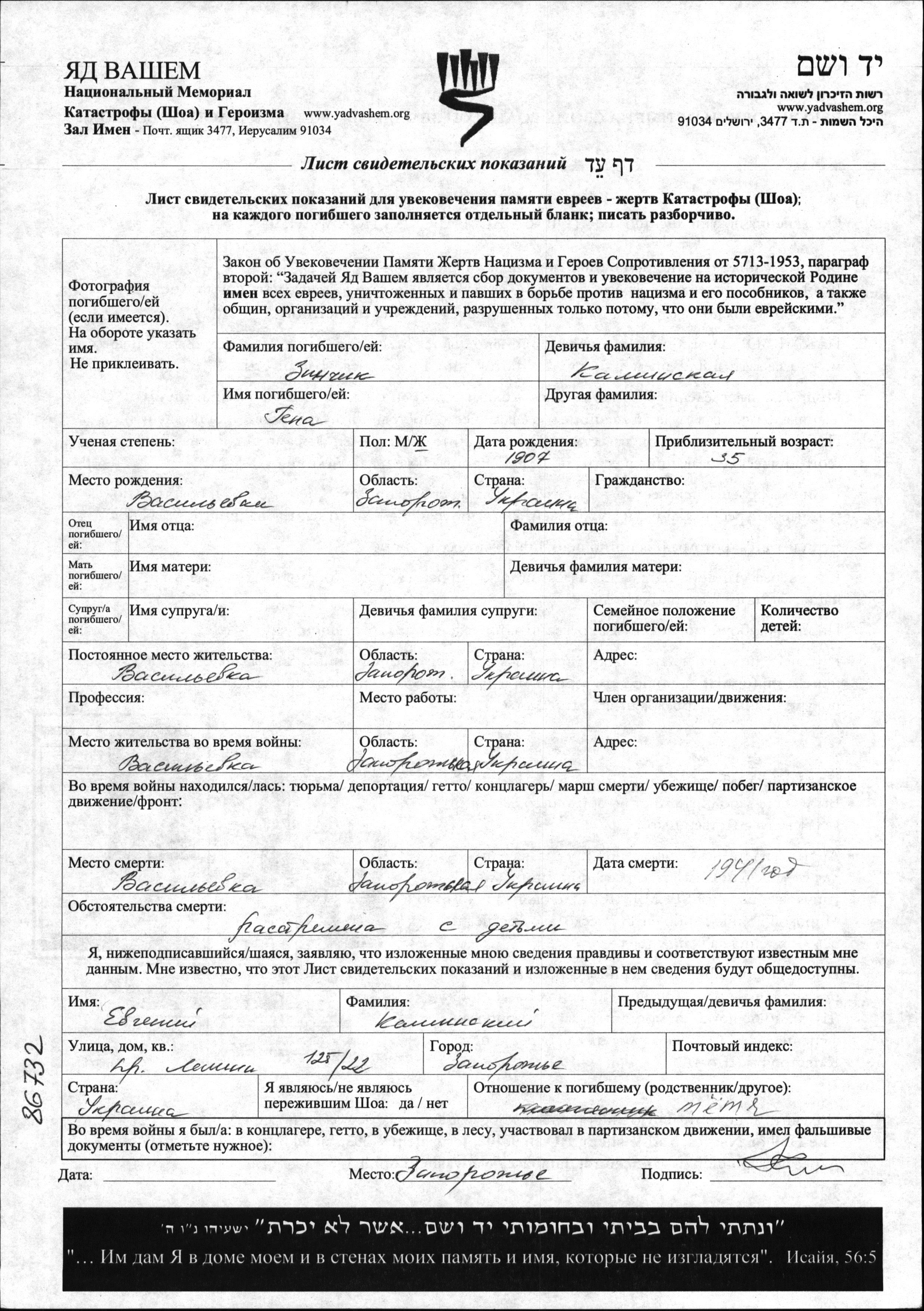 Yad Vashem - Pages of Testimony Names Memorial Collection