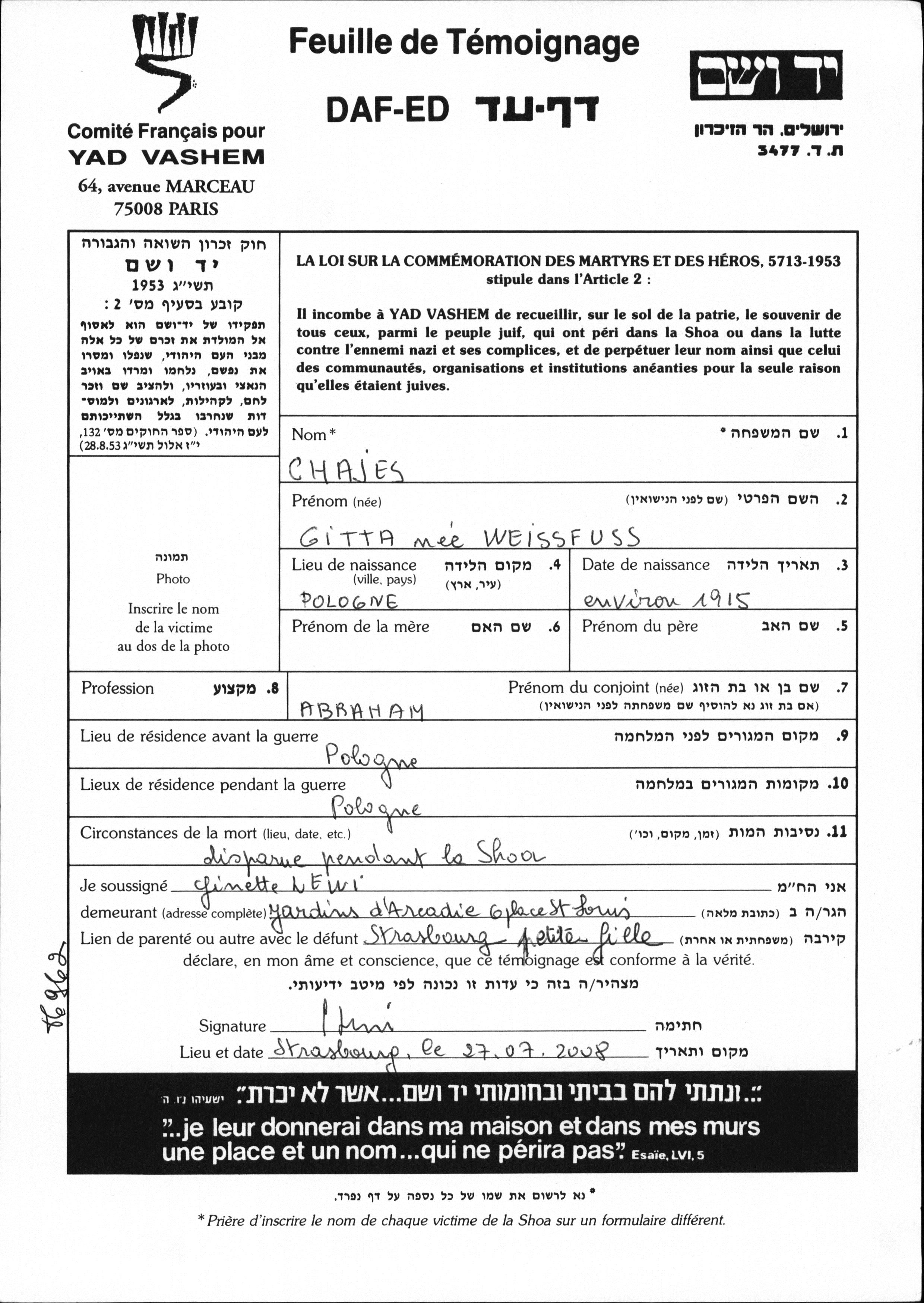 Yad Vashem - Pages of Testimony Names Memorial Collection