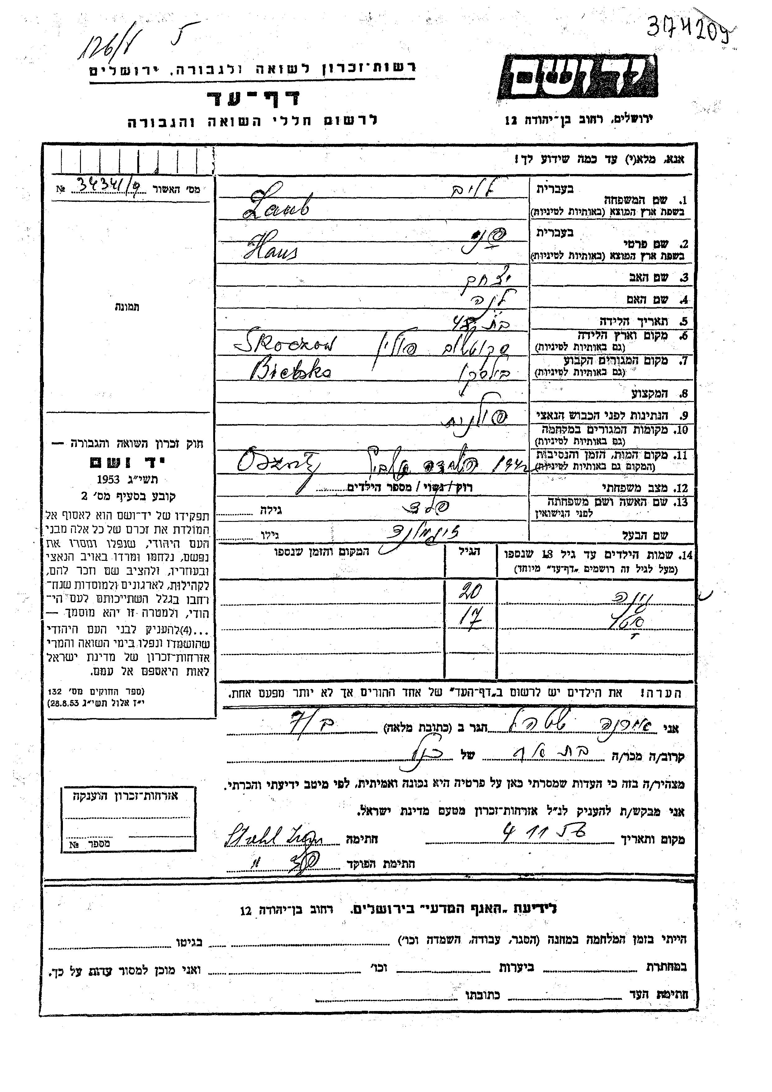Fani Hans Laub Loib was born in Skoczow, Poland to Yitzkhak and Lena. He was married to Zigmund nee Feld. Prior to WWII he lived in Bielsko, Poland. Fani Hans was murdered in the Shoah. Place of death: Auschwitz, Poland, 1942.