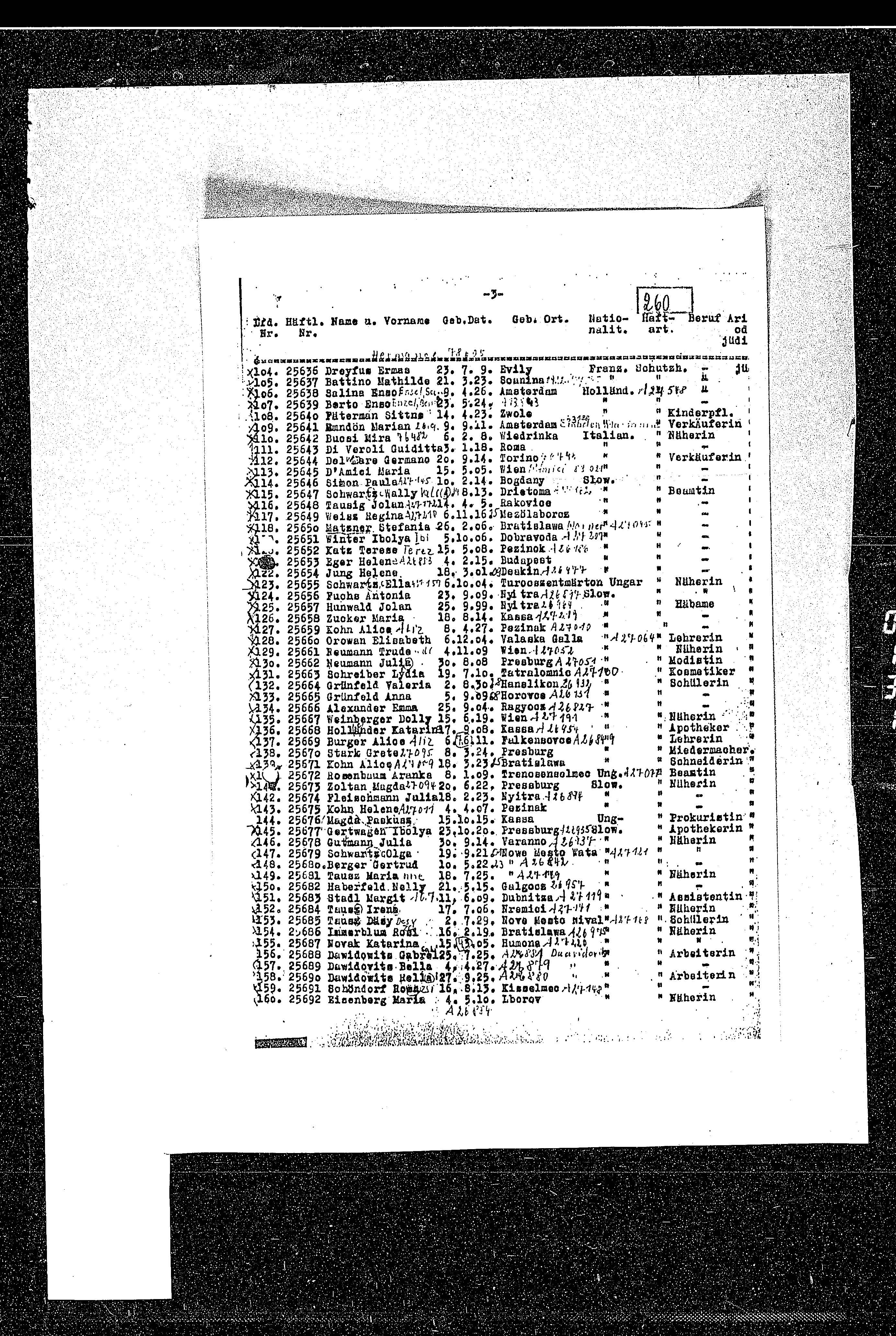 List of Jewish women inmates transferred from Auschwitz to Lippstadt labor camp, 23/11/1944