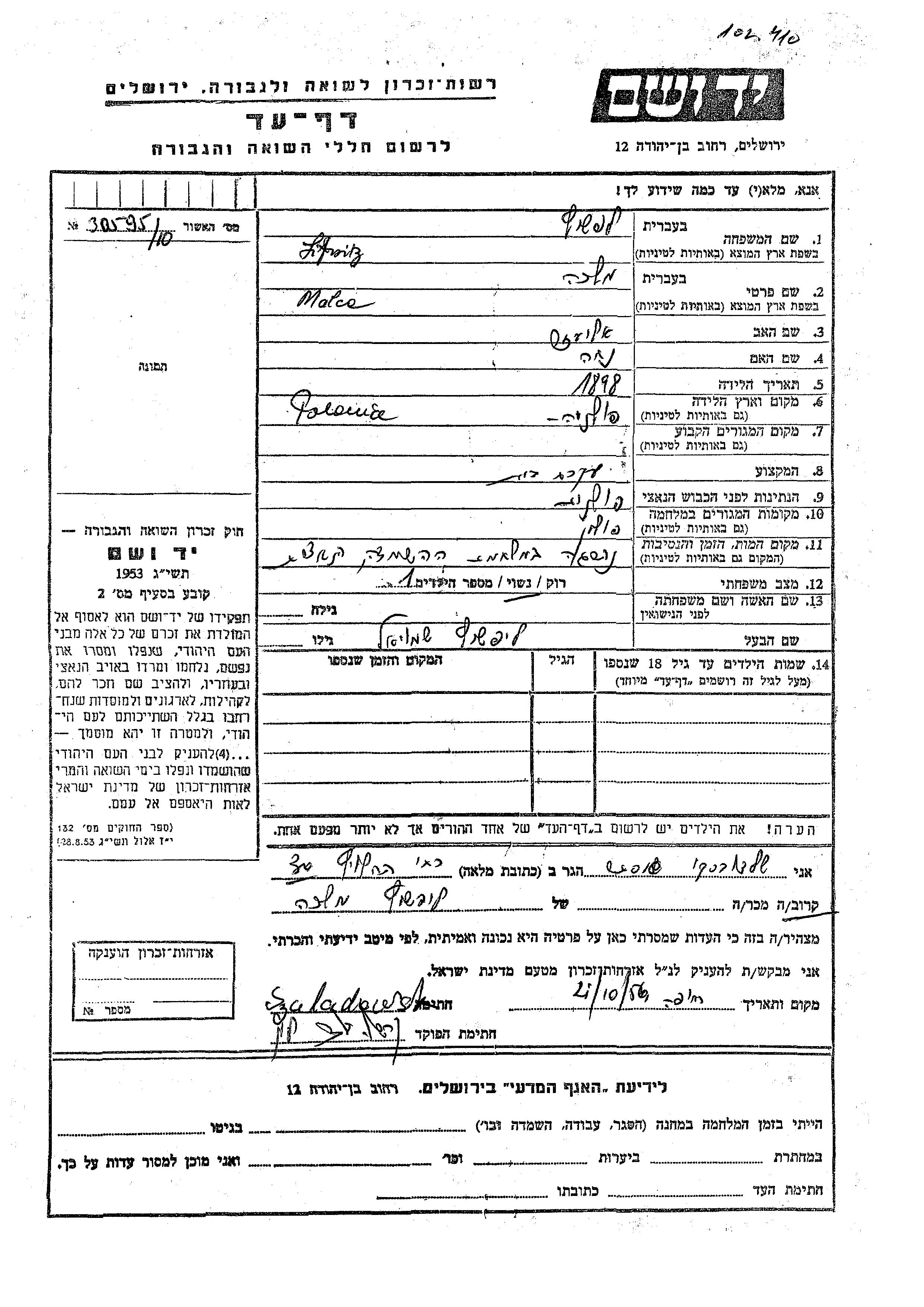 Yad Vashem - Pages of Testimony Names Memorial Collection