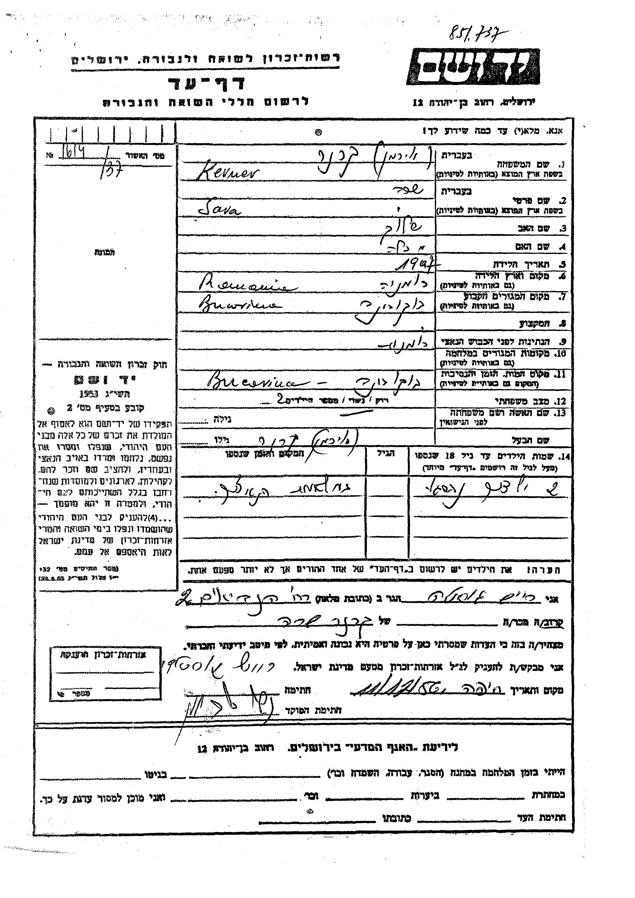 Yad Vashem - Pages of Testimony Names Memorial Collection