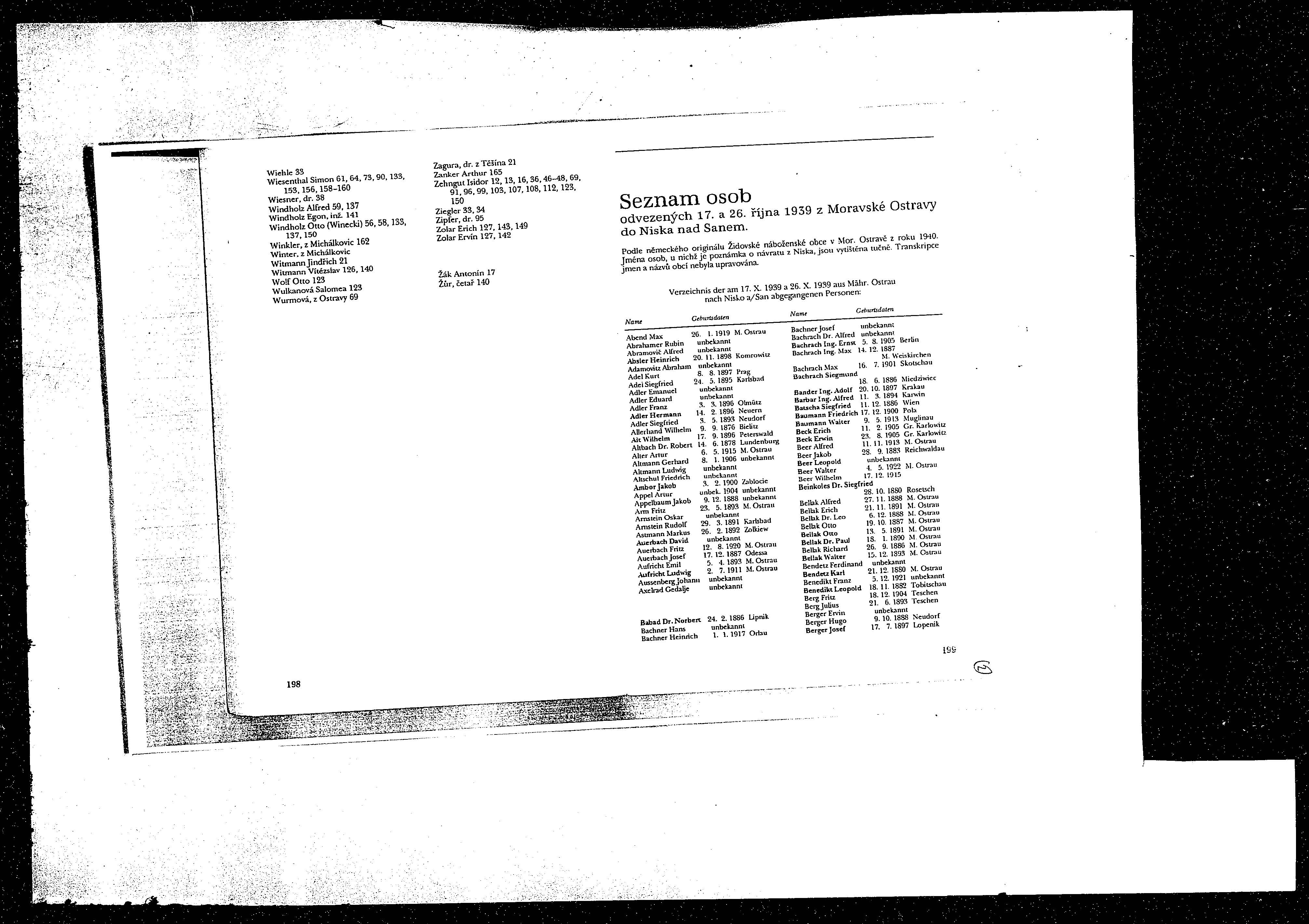 List of Jews deported from Moravska Ostrava to Nisko camp, 17/10/1939 and 26/10/1939