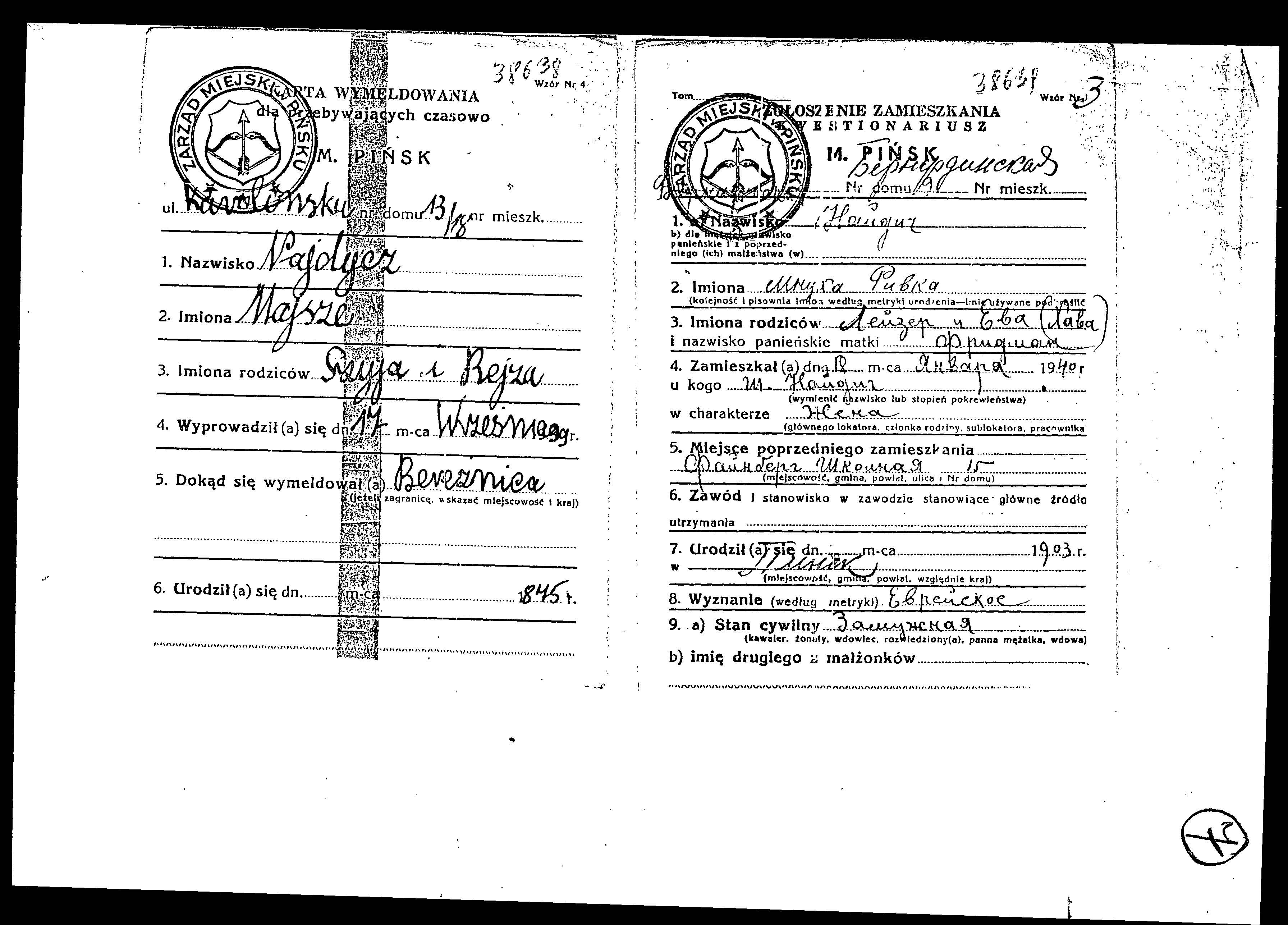 Majsze Najdycz was born, 1875 to Szyja and Rejza. Prior to WWII he lived in Varshava, Poland.