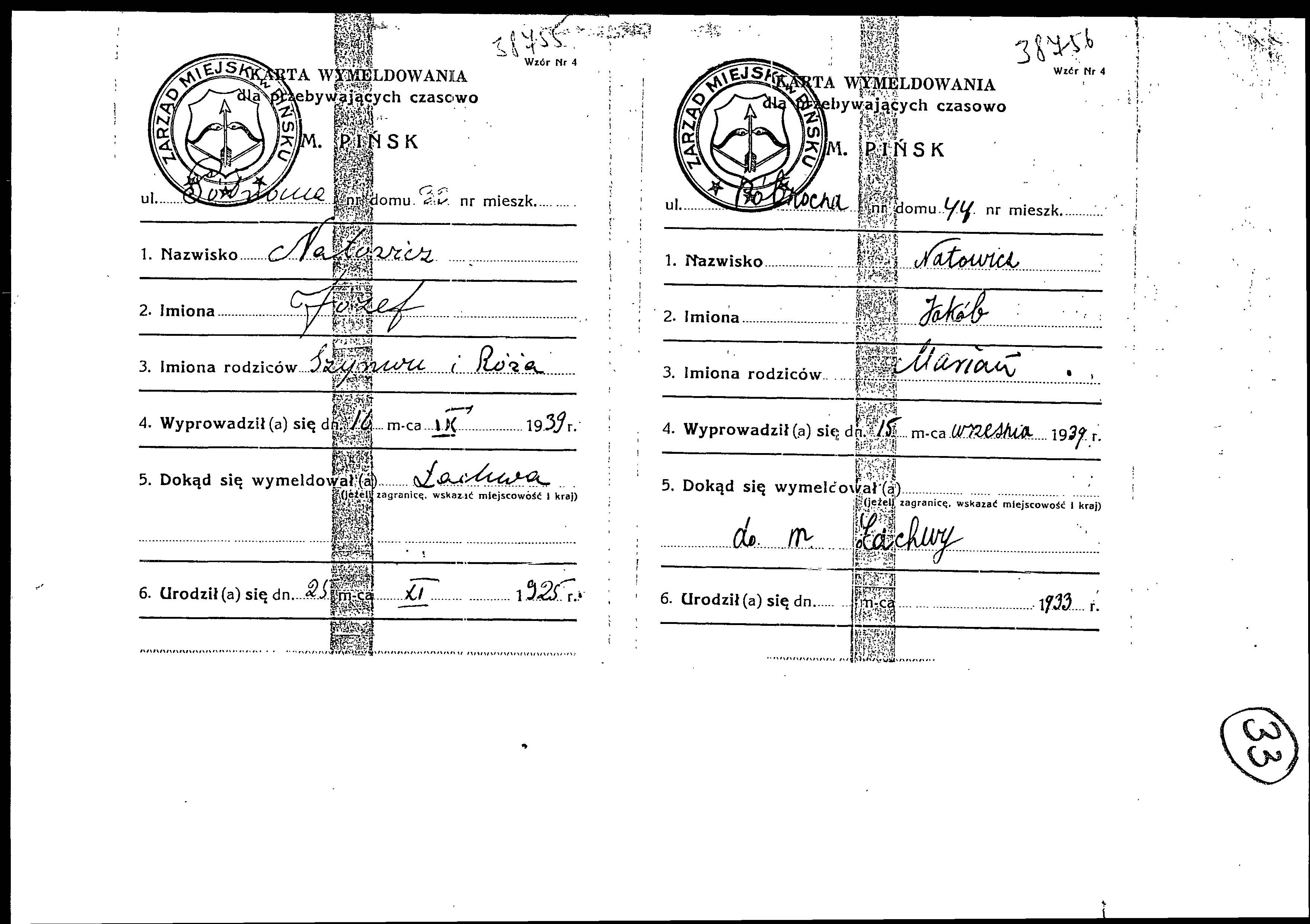 Registration card file of the Jewish residents and refugees from Pinsk whose family names start with “N”, 1939-1941