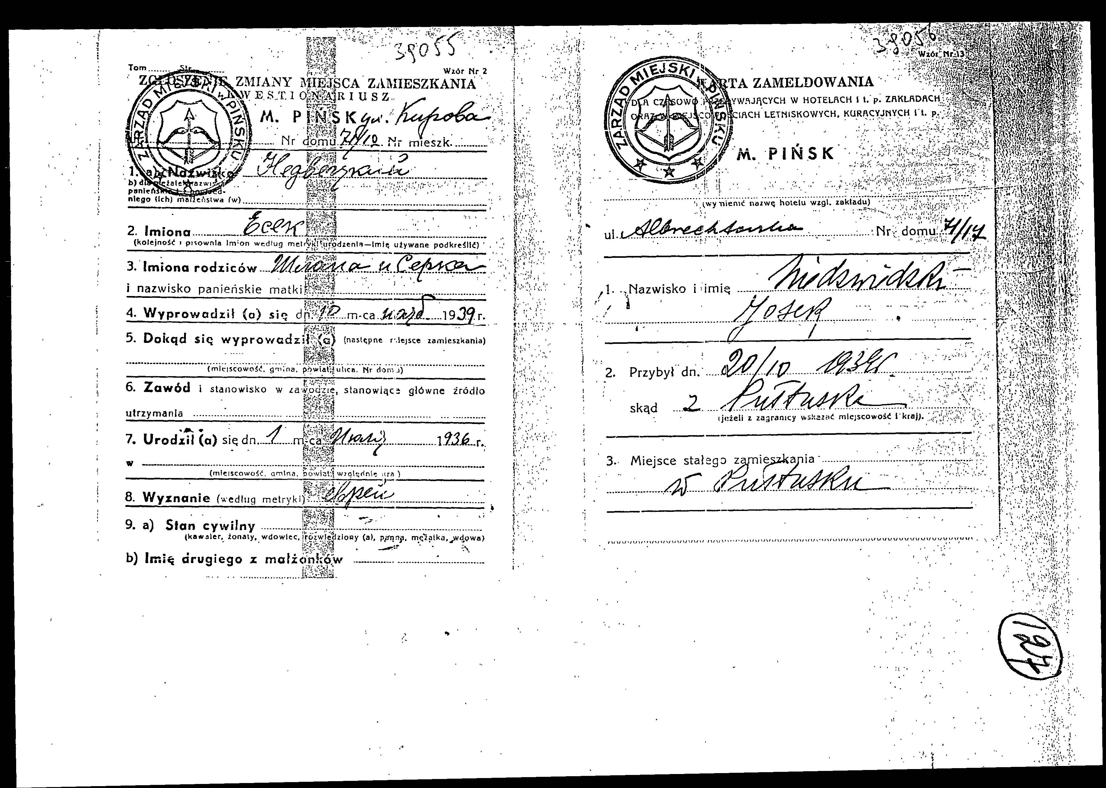 Yesek Nedvetzki was born, 1936 to Shloma and Serka. He was child. Prior to WWII he lived in Pultosk, Poland.