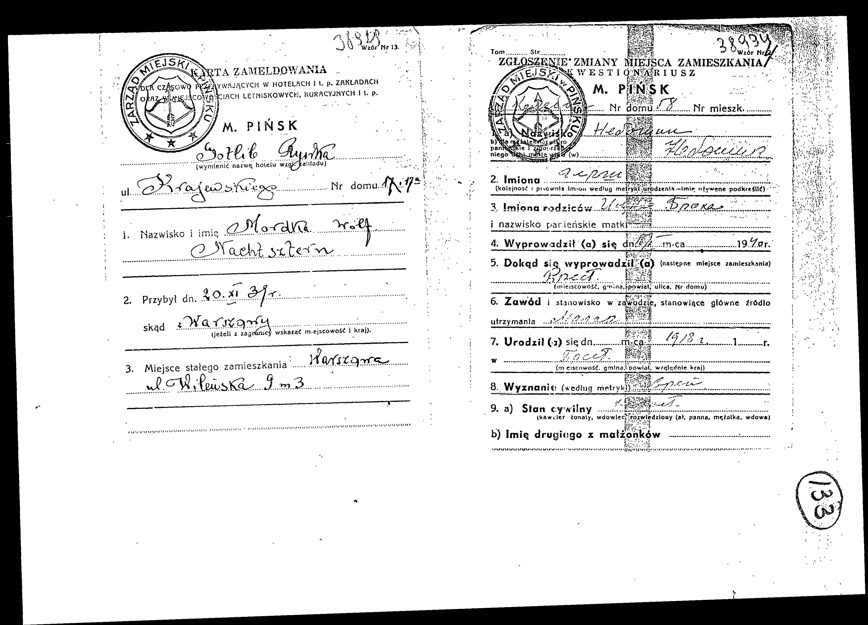 Registration card file of the Jewish residents and refugees from Pinsk whose family names start with “N”, 1939-1941
