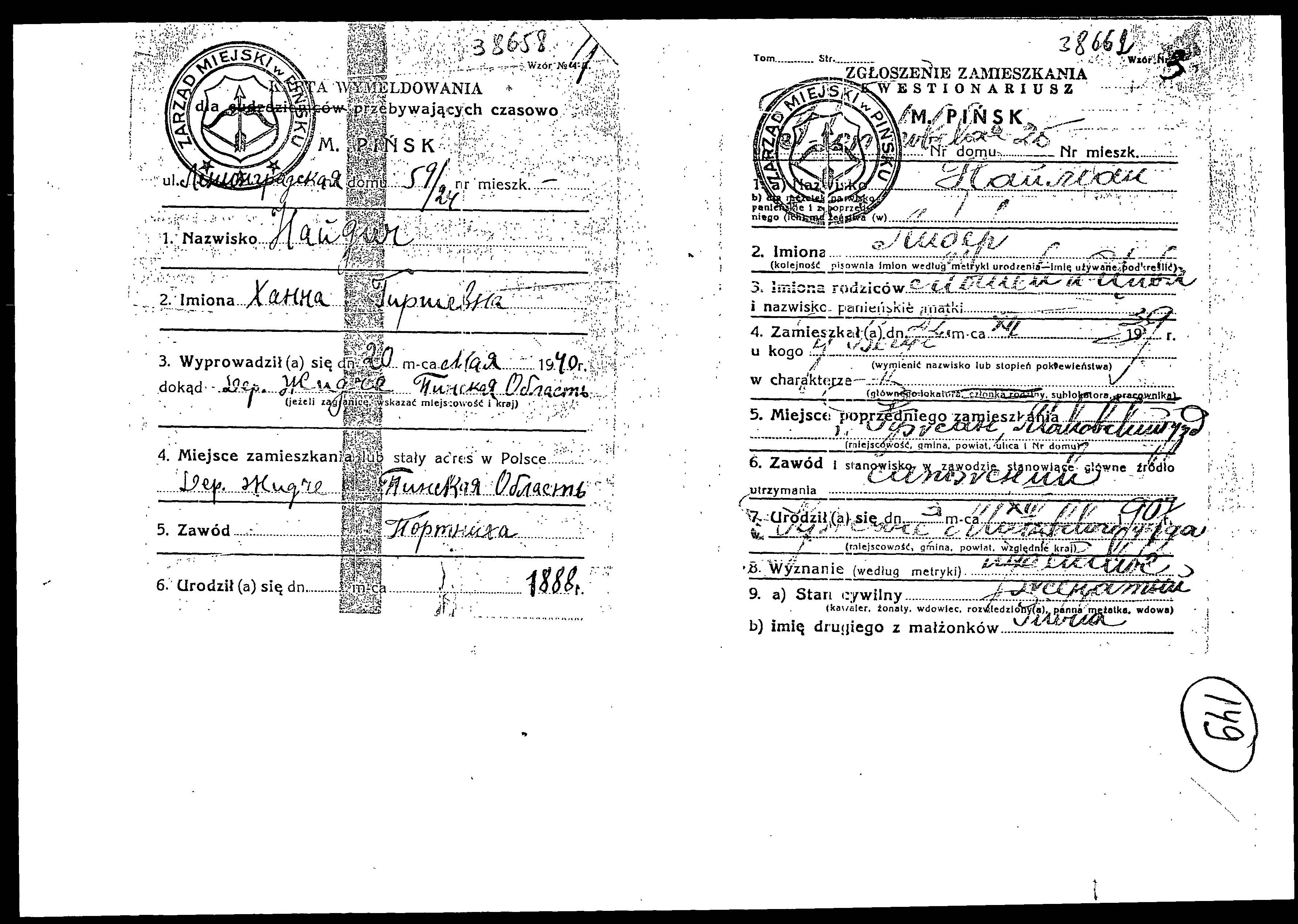 Registration card file of the Jewish residents and refugees from Pinsk whose family names start with “N”, 1939-1941