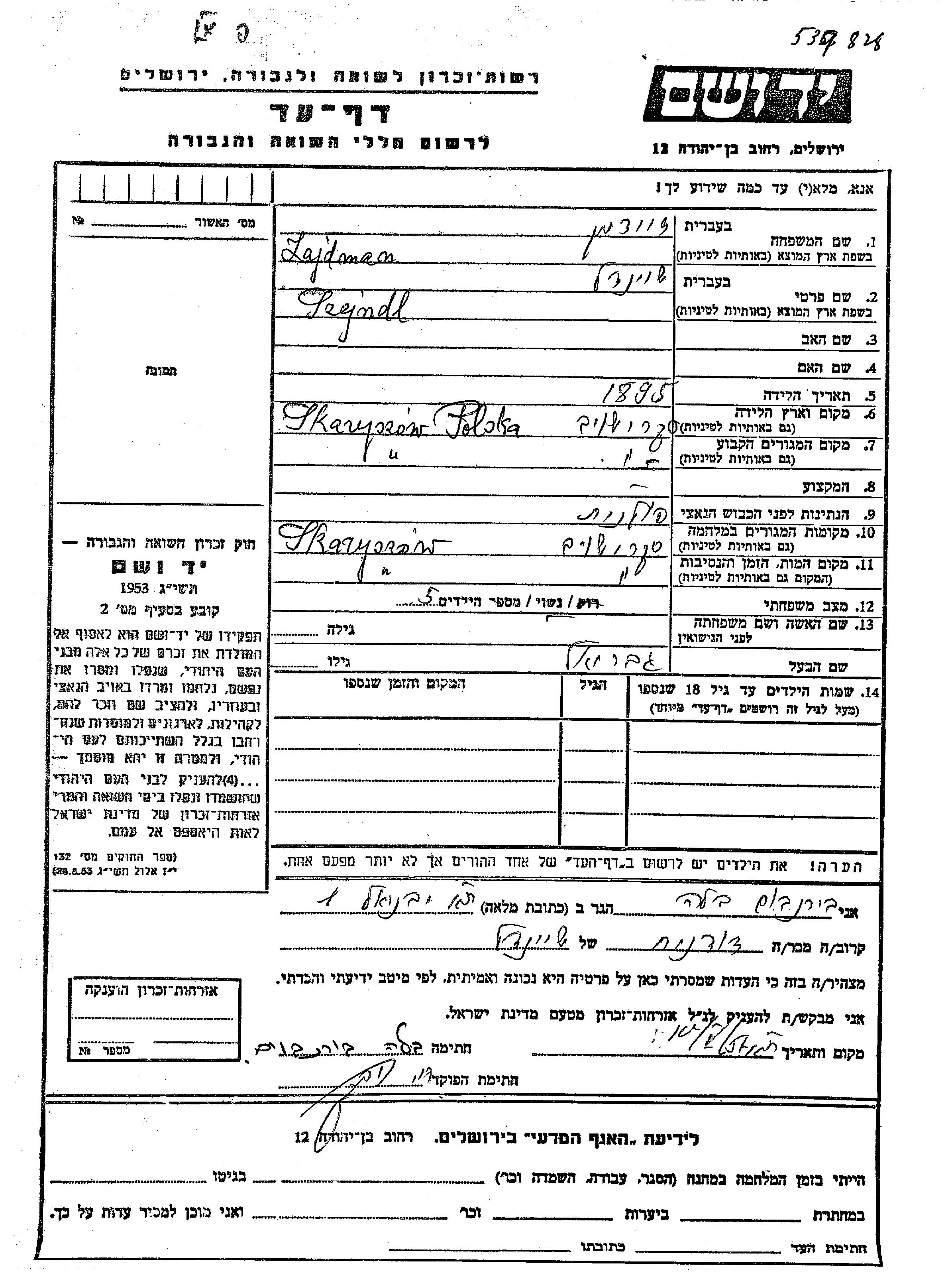 Szejndl Zajdman was born in Skaryszew, Poland, 1895. She was married to Gabriel. Prior to WWII she lived in Skaryszew, Poland. During the war she was in Skaryszew, Poland. Szejndl was murdered in the Shoah. Place of death: Skaryszew, Poland.