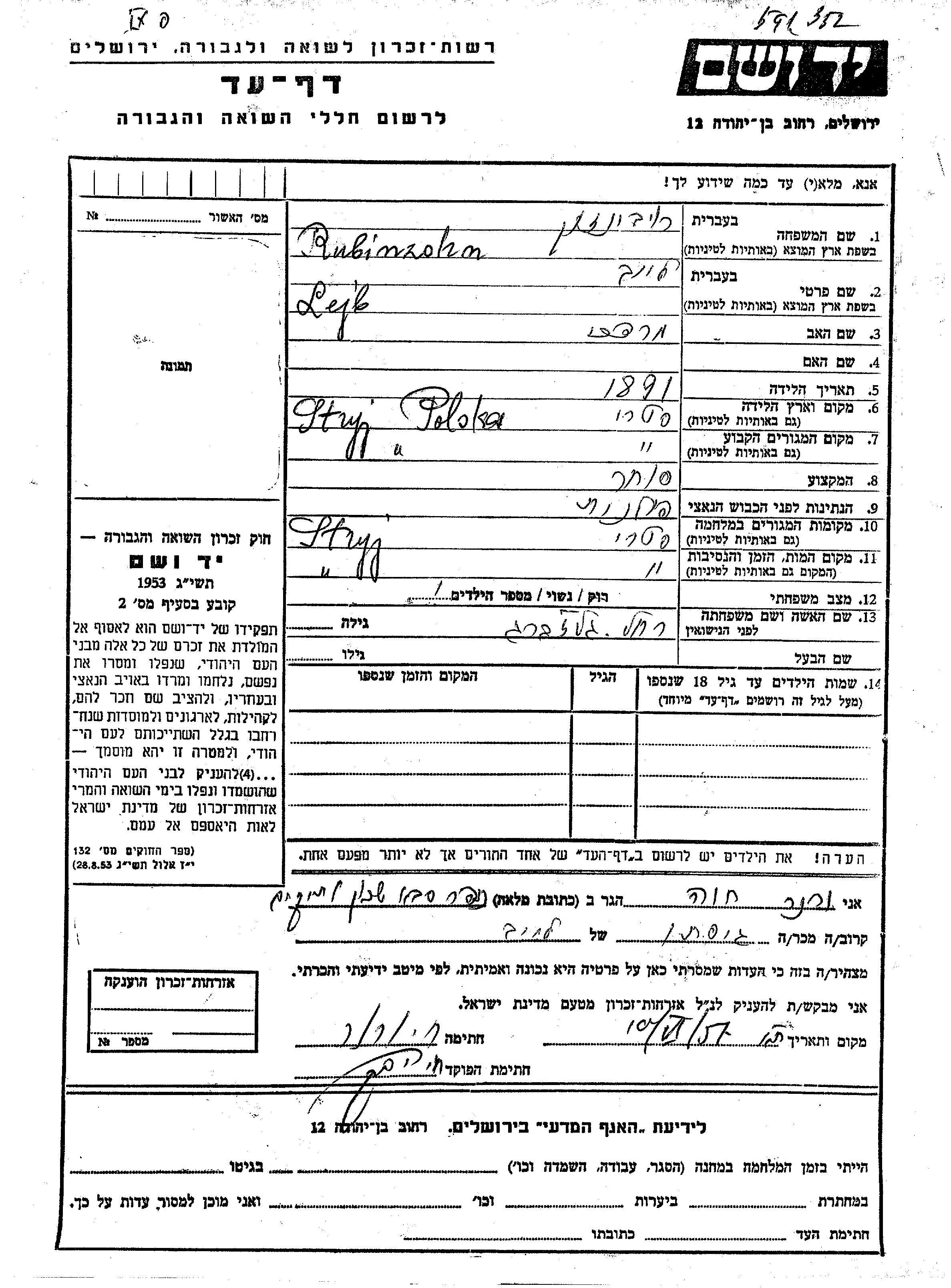 Search by last name of the submitter of the Page of Testimony, including diminutives or nicknames