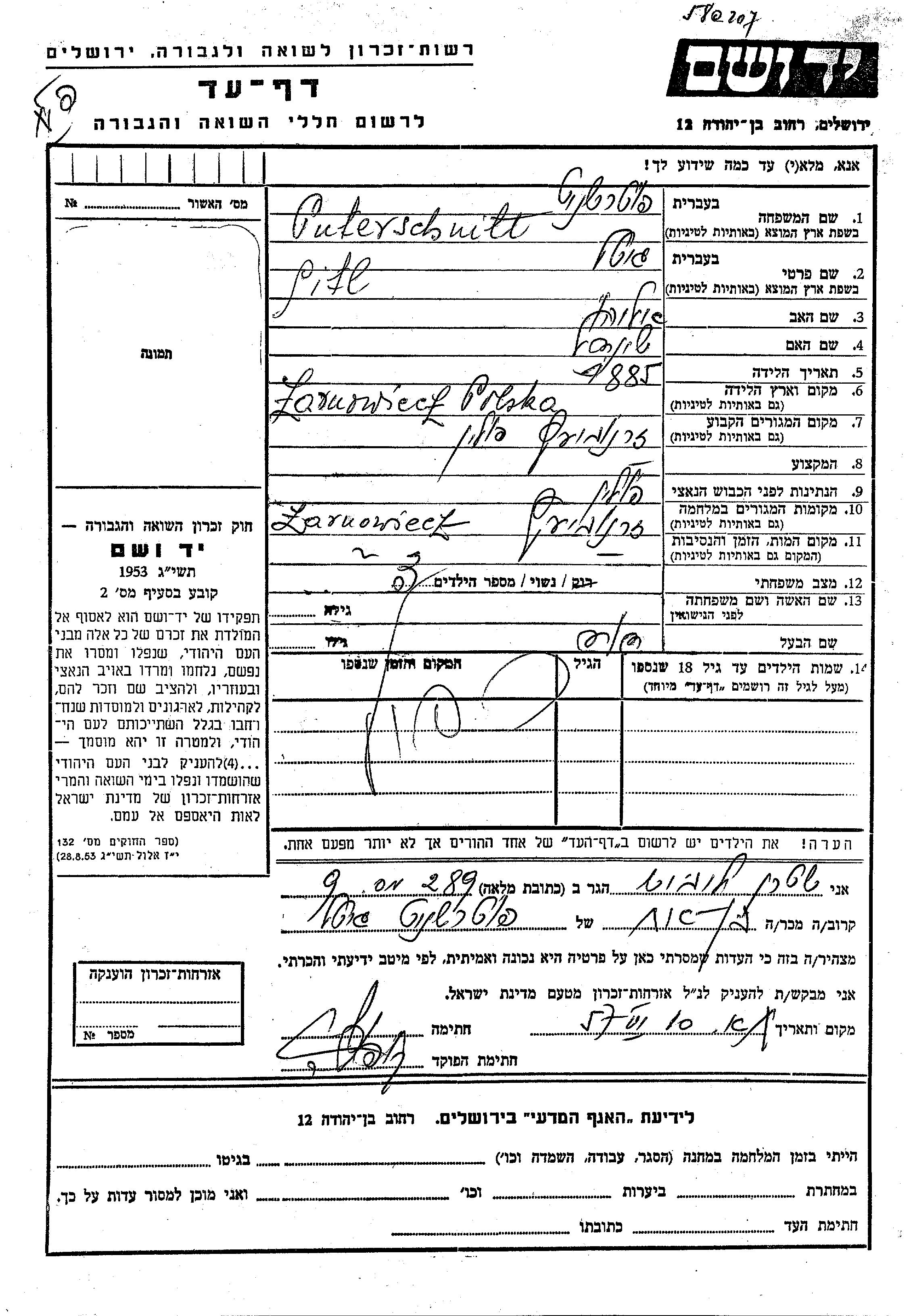 Yad Vashem - Pages of Testimony Names Memorial Collection