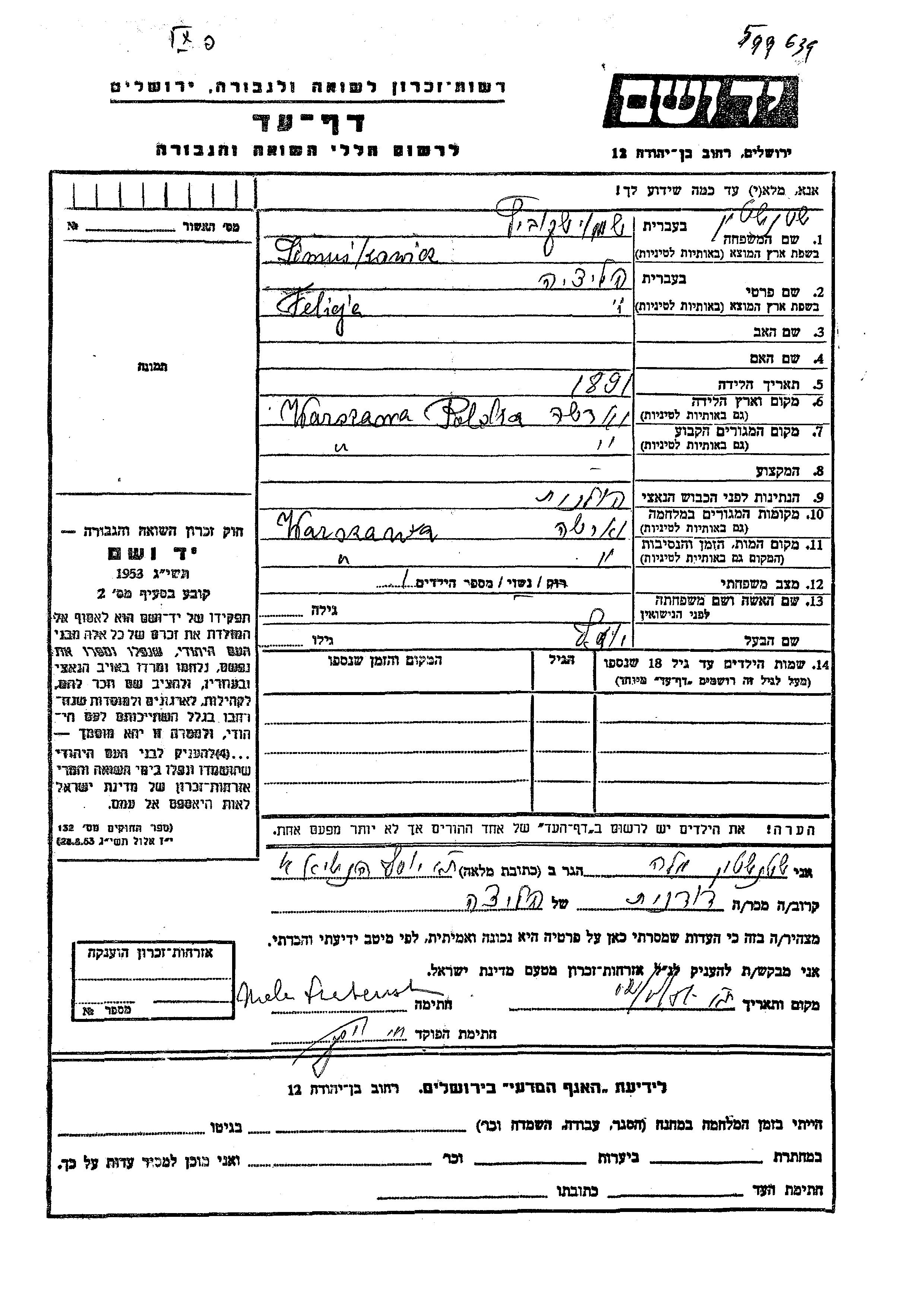 Yad Vashem - Pages of Testimony Names Memorial Collection
