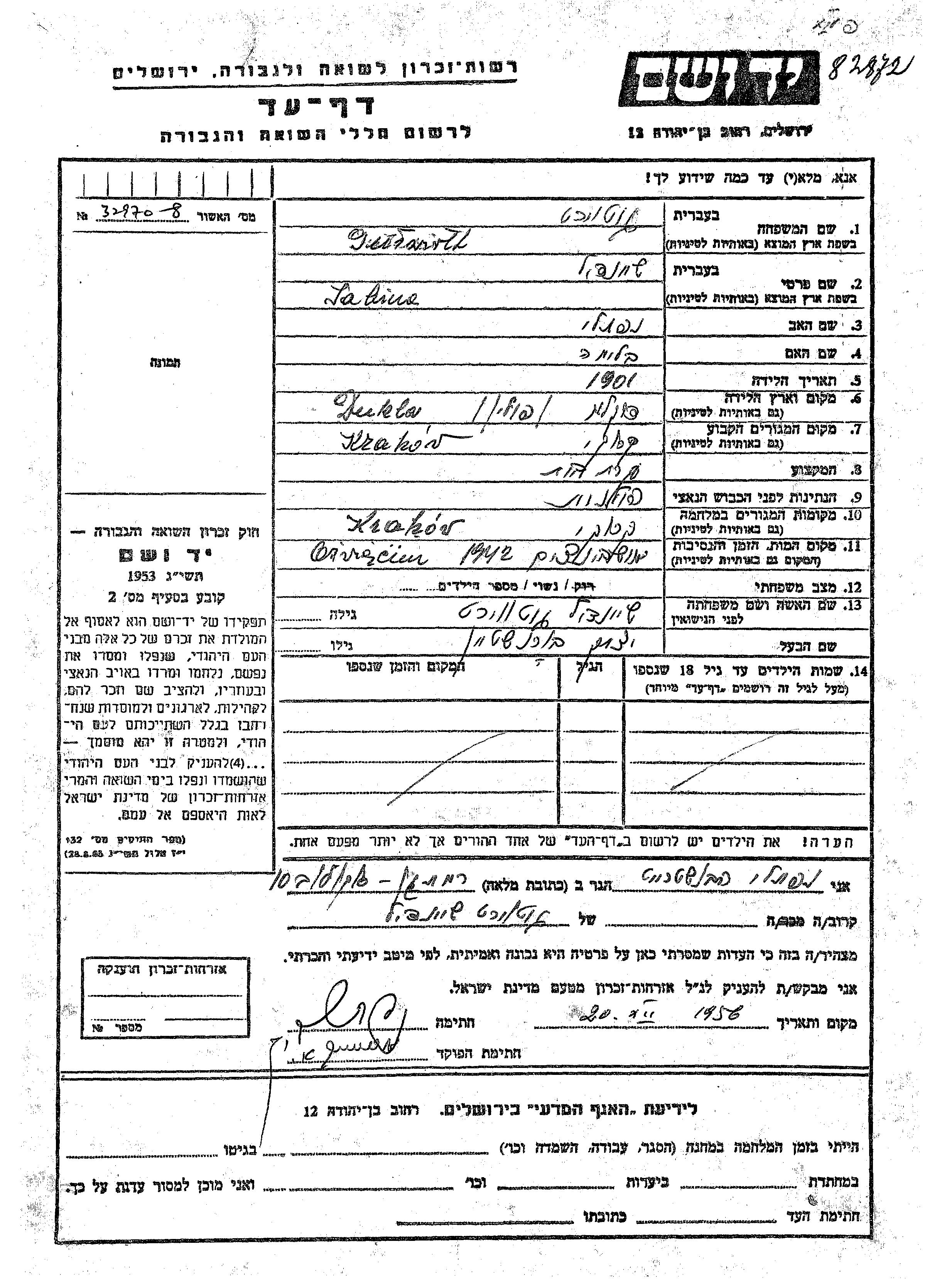 Yad Vashem - Pages of Testimony Names Memorial Collection