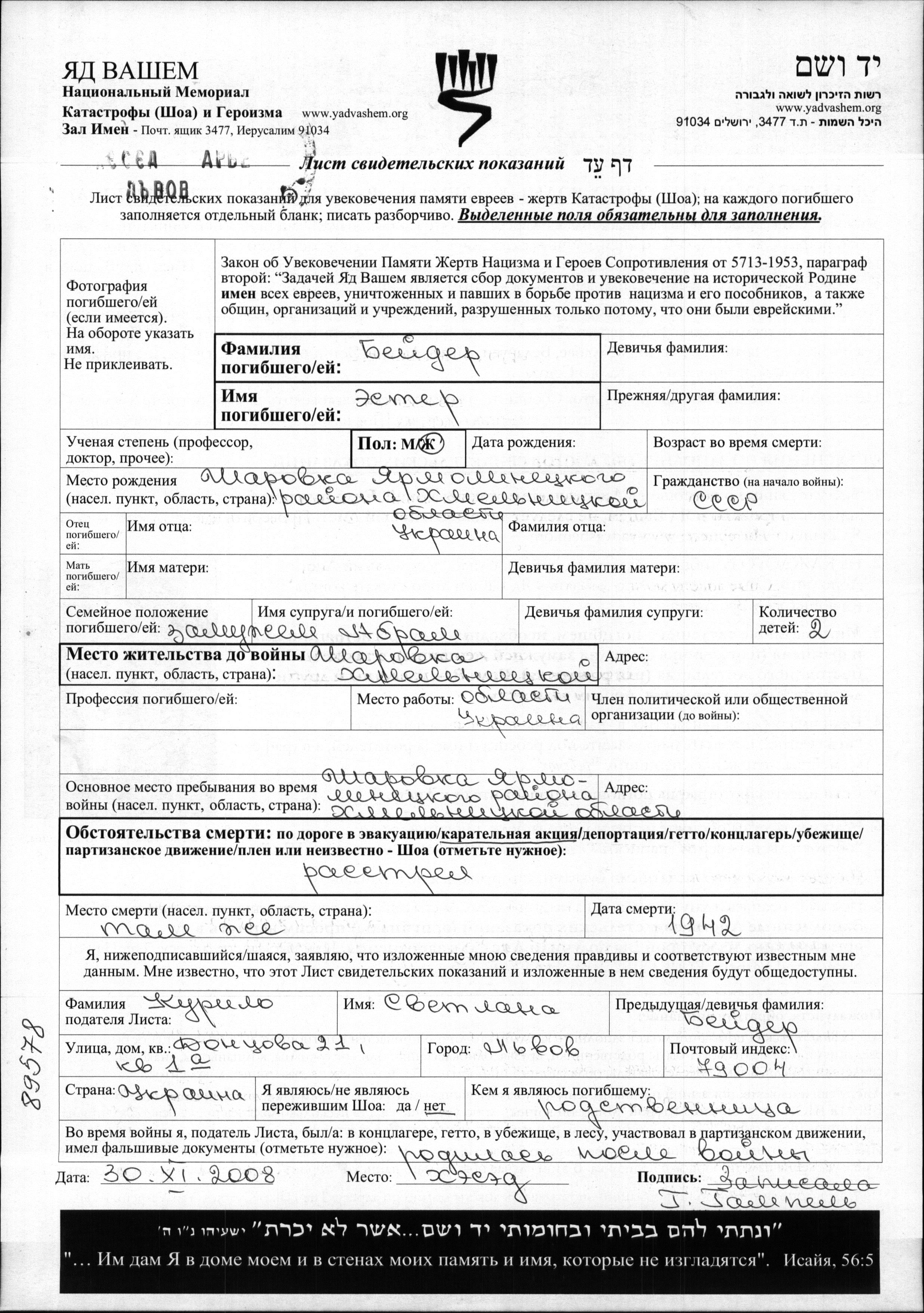 Yad Vashem - Pages of Testimony Names Memorial Collection