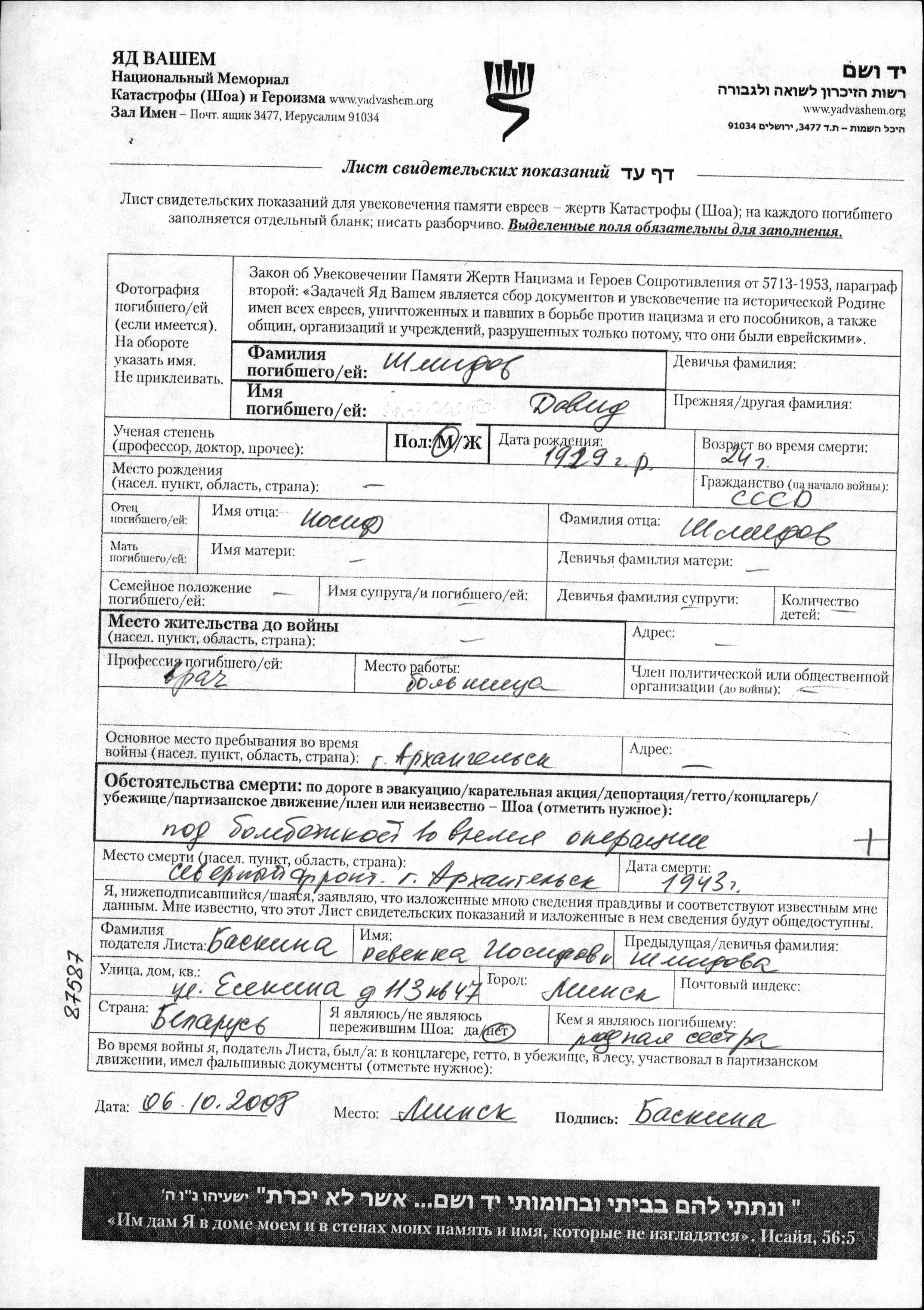 Yad Vashem - Pages of Testimony Names Memorial Collection